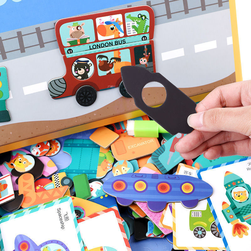 - Đồ chơi bao gồm các miếng ghép nam châm theo từng chủ đề