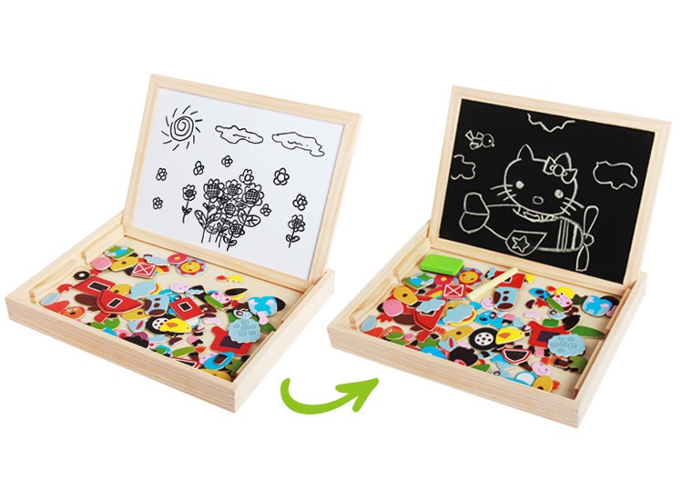 - Bảng nam châm 2 mặt: một mặt để bé có thể ghép hình theo chủ đề