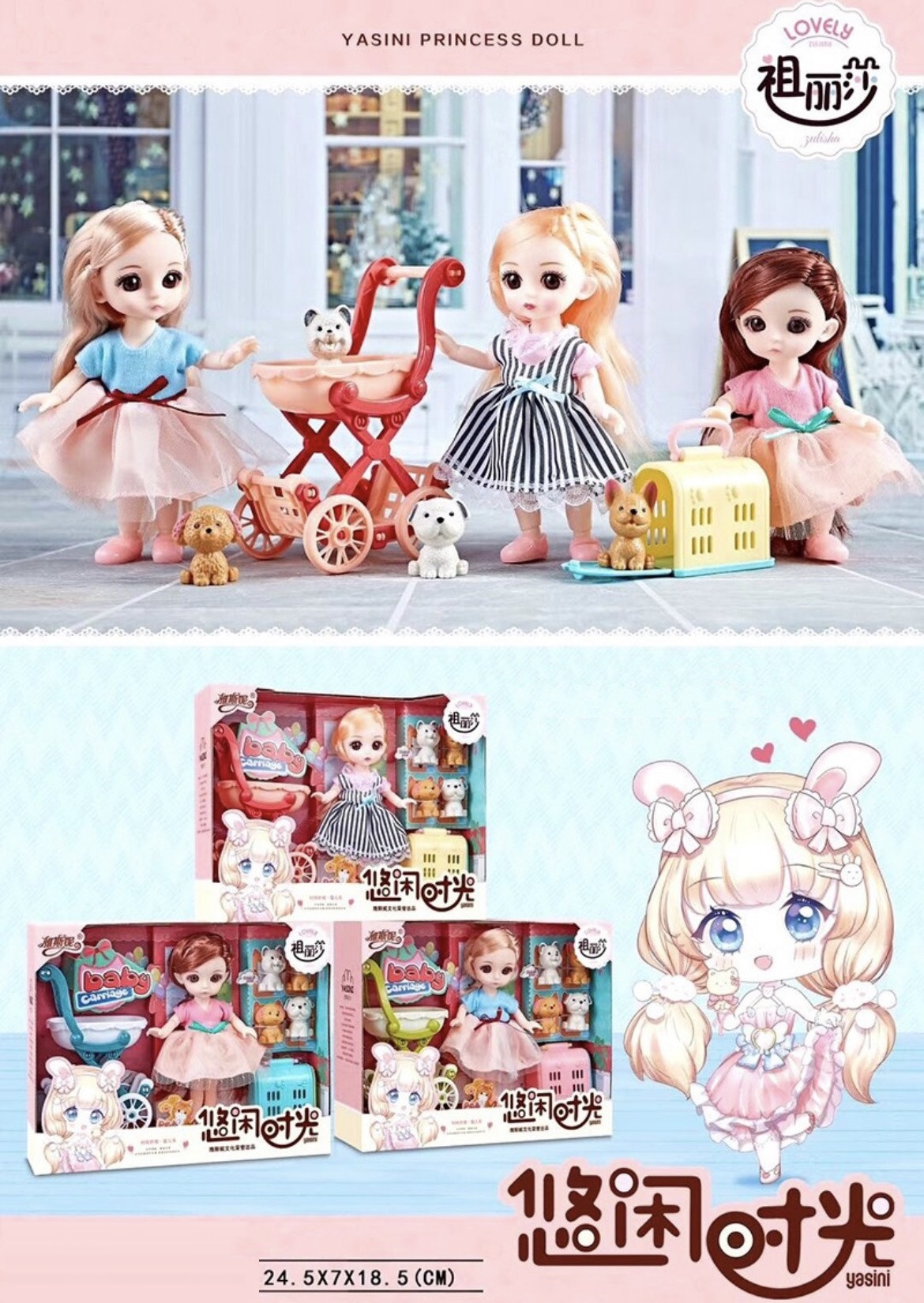 - Hộp đồ chơi mô hình búp bê với các con thú cưng rất dễ thương cho bé!