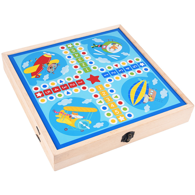 Bộ cờ 3 trong 1 bằng gỗ gồm bàn bóng đá, bàn cờ vua và bàn cờ cá ngựa cho bé: