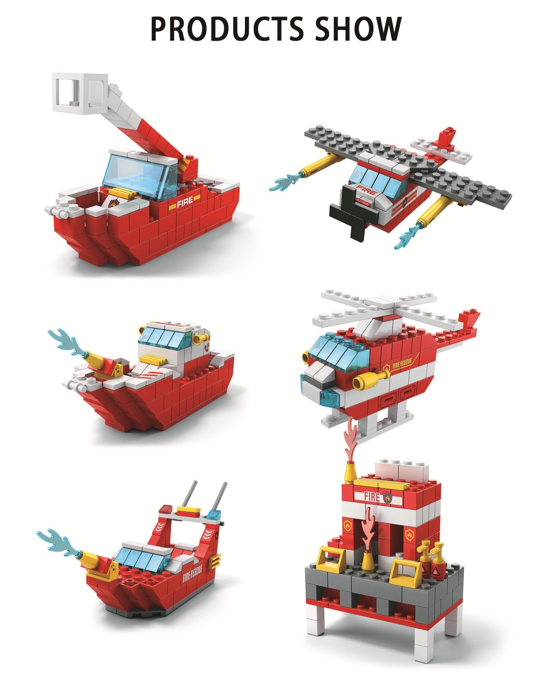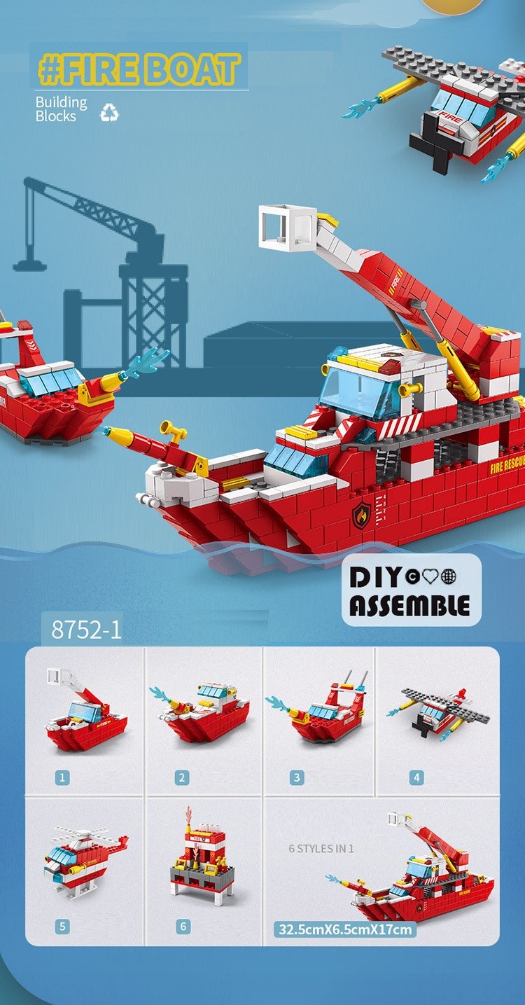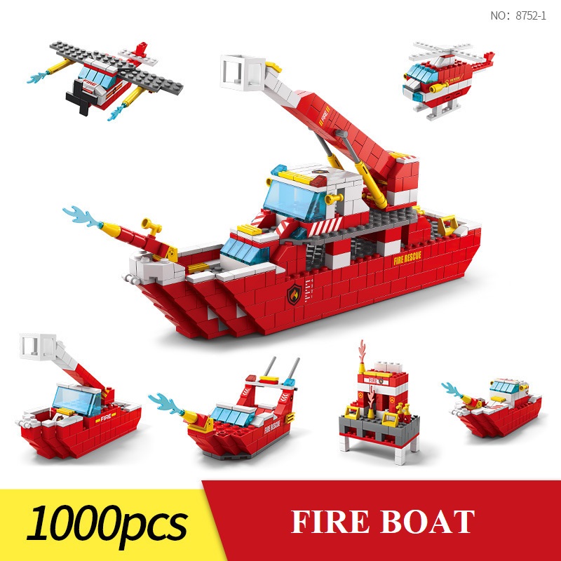 Bộ xếp hình lắp ghép 1000 chi tiết tàu tàu cứu hỏa 6 trong 1 với nhiều chi tiết, mẫu ghép khác nhau cho bé