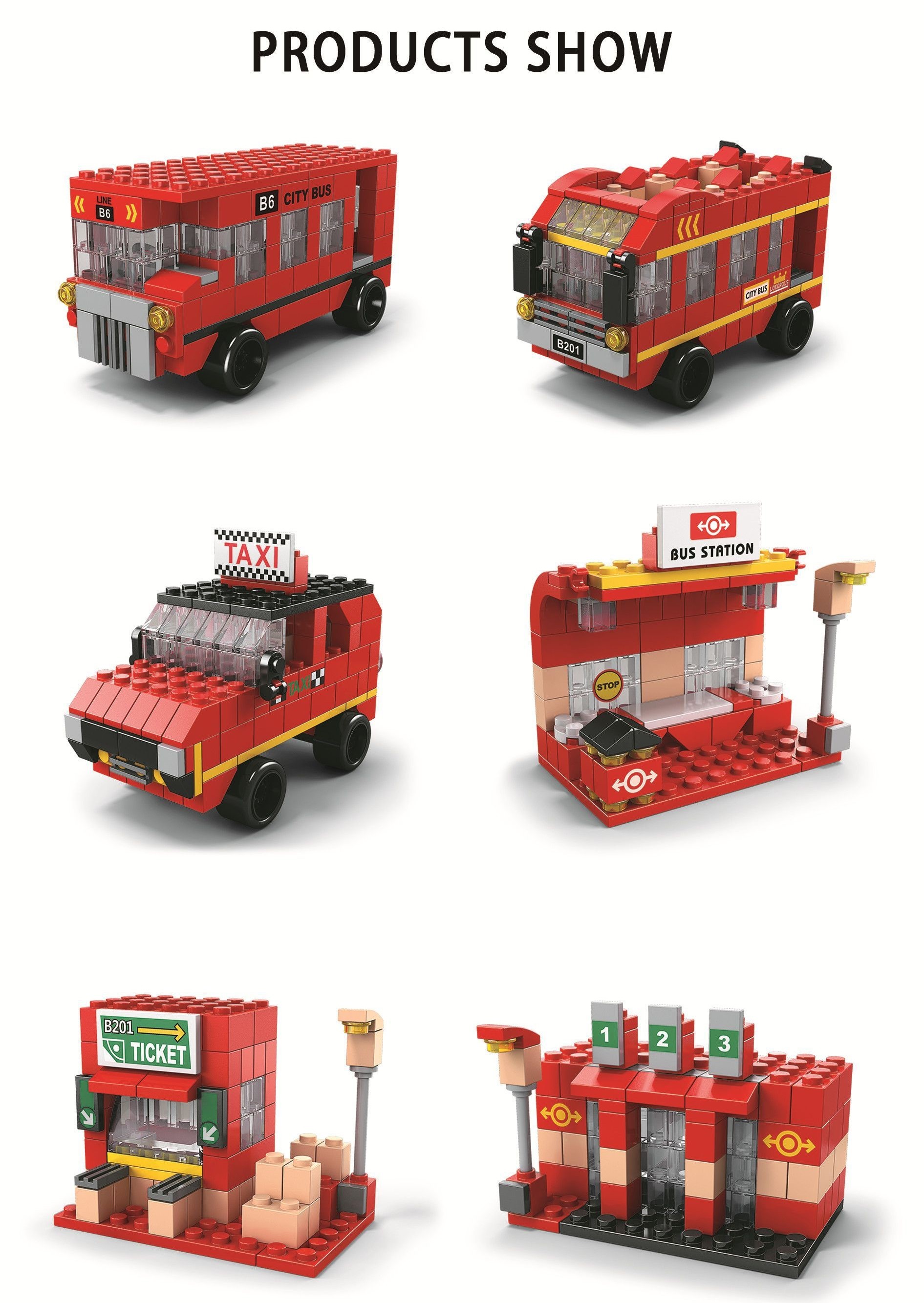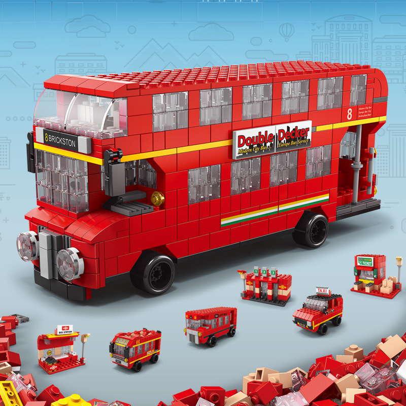 Bộ xếp hình lắp ghép 1000 chi tiết xe bus hai tầng 6 trong 1 với nhiều chi tiết, mẫu ghép khác nhau cho bé: