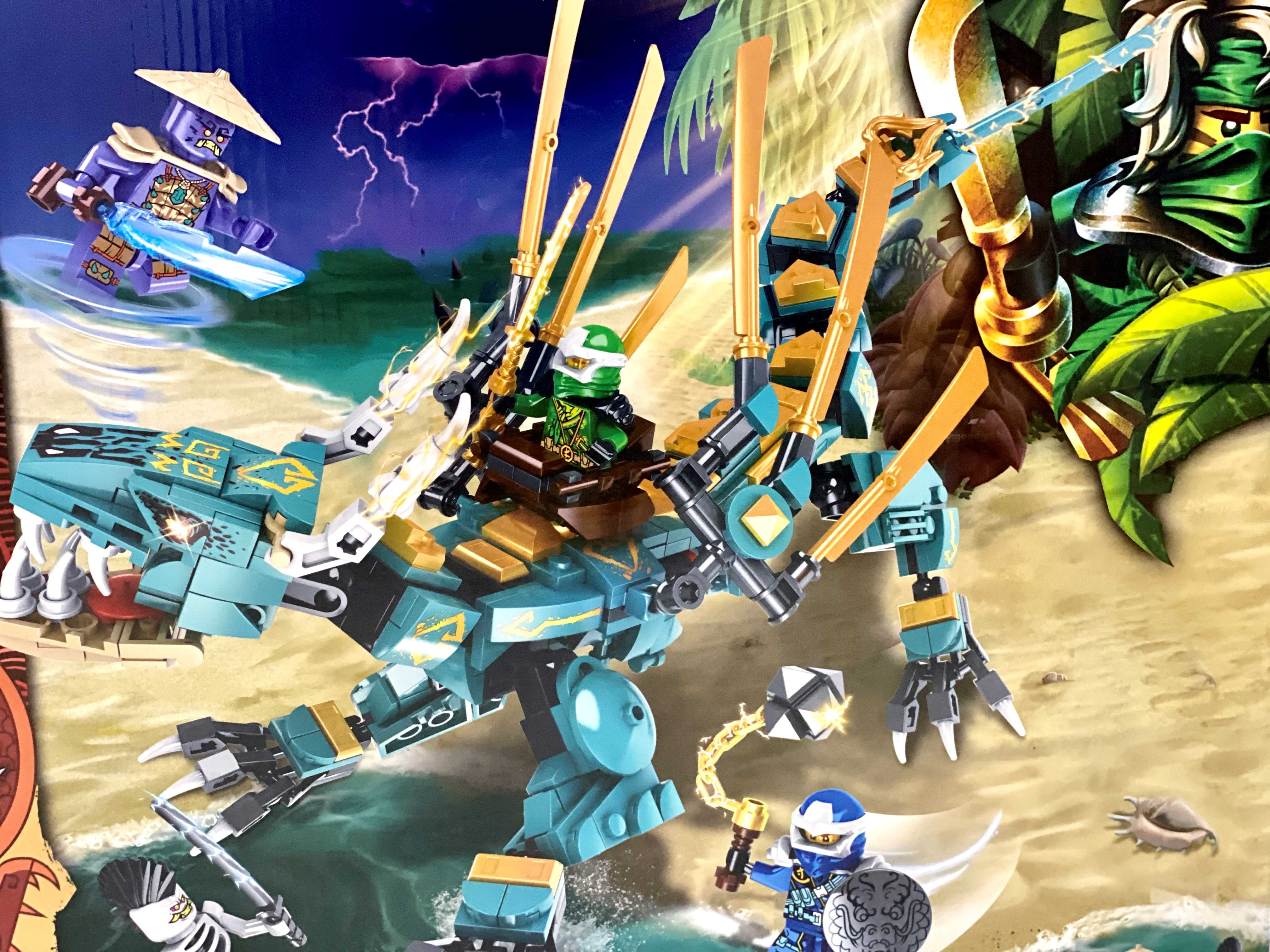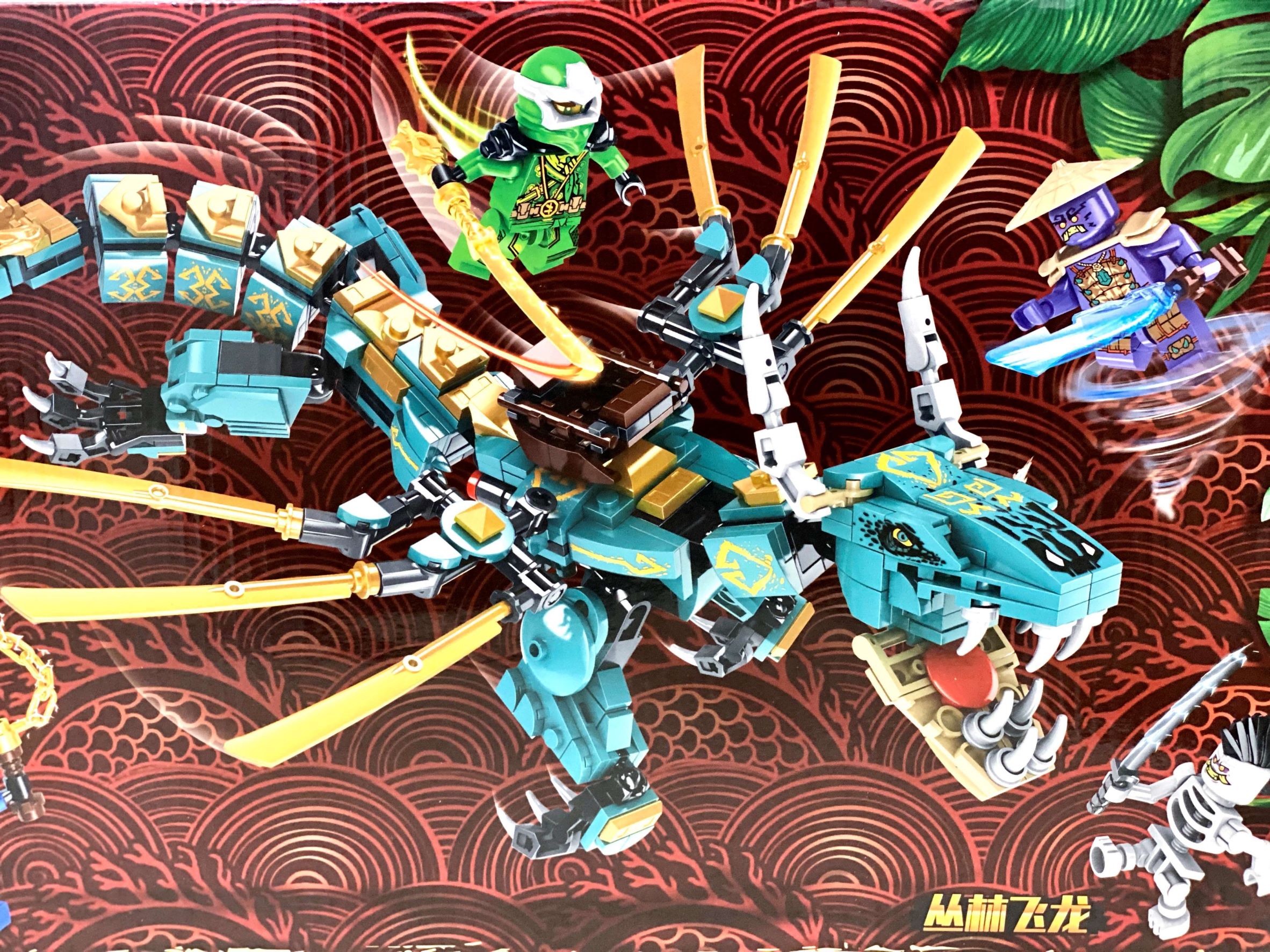 - Bộ Rồng thần Jungle của Lloyd. Với đôi cánh, chân và đuôi có thể điều chỉnh tư thế linh hoạt, hàm đóng mở, cộng với yên cho ninja cưỡi, rồng thần truyền cảm hứng cho trò chơi giàu trí tưởng tượng. Đồ chơi rồng đi kèm với 4 mô hình nhân vật thu nhỏ: Island Lloyd, Island Zane, PoulErik và Thunder Keeper, tất cả đều được trang bị vũ khí để trẻ em có thể vui chơi các cuộc đụng độ hấp dẫn để lấy bùa hộ mệnh.