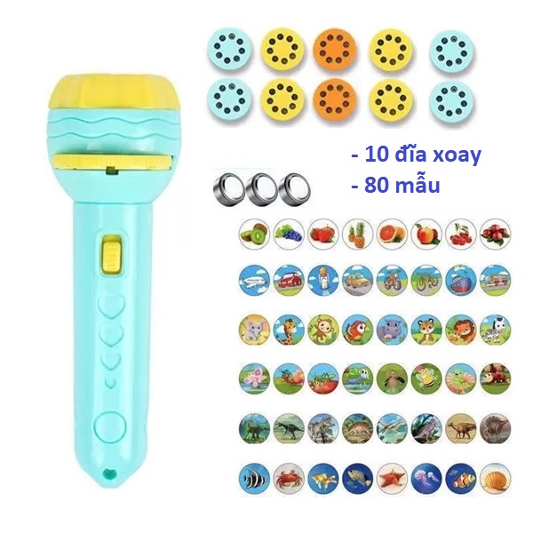 Đèn pin chiếu hình cho bé 80 hình động vật ngộ nghĩnh, đồ chơi cho bé phát triển trí tuệ bé vui chơi khám phá