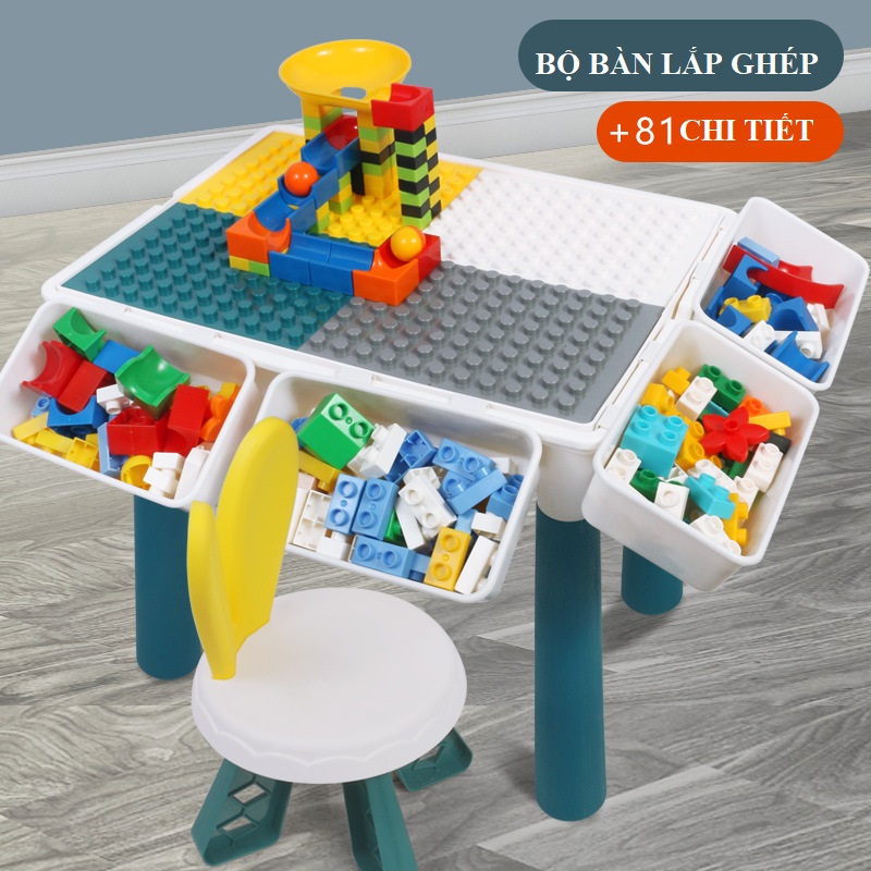- Bàn được thiết kế 2 mặt: mặt bàn lego và mặt bàn trơn