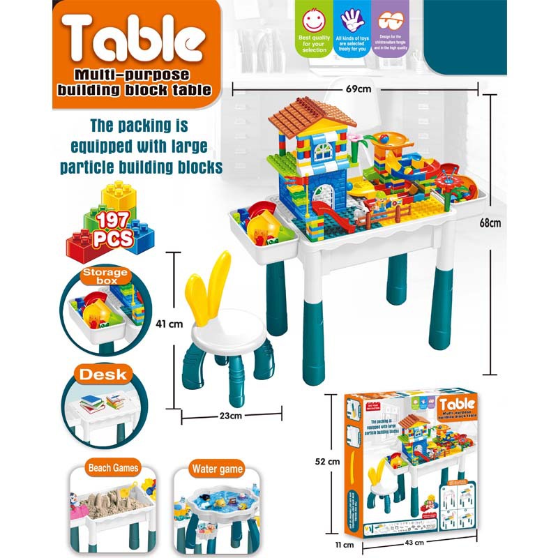 Đồ chơi bàn xếp hình lắp ghép sáng tạo đa năng với 197 chi tiết kèm ghế ngồi cho bé