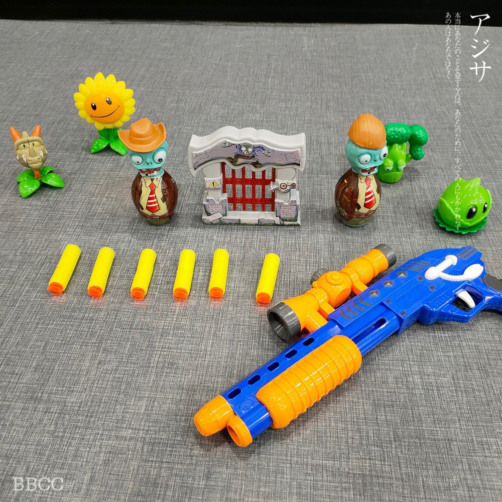 Đồ chơi bắn Zoombie bằng s.úng có kính ngắm và đạn mút xốp, kèm các nhân vật trong hoa quả đại chiến