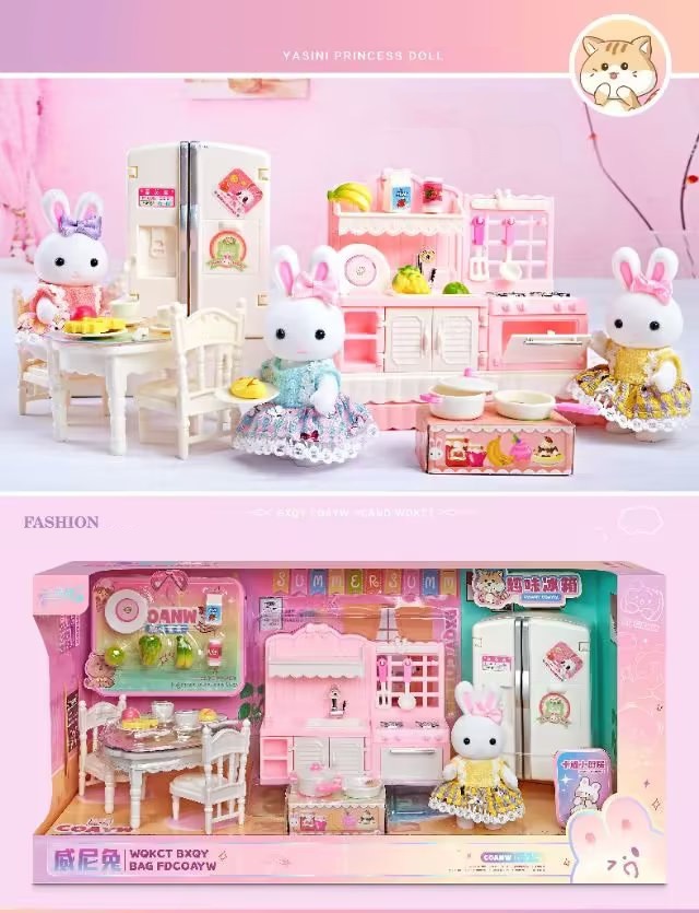 Đồ chơi búp bê thỏ mô hình gian bếp cùng các phụ kiện nhà bếp cho bé