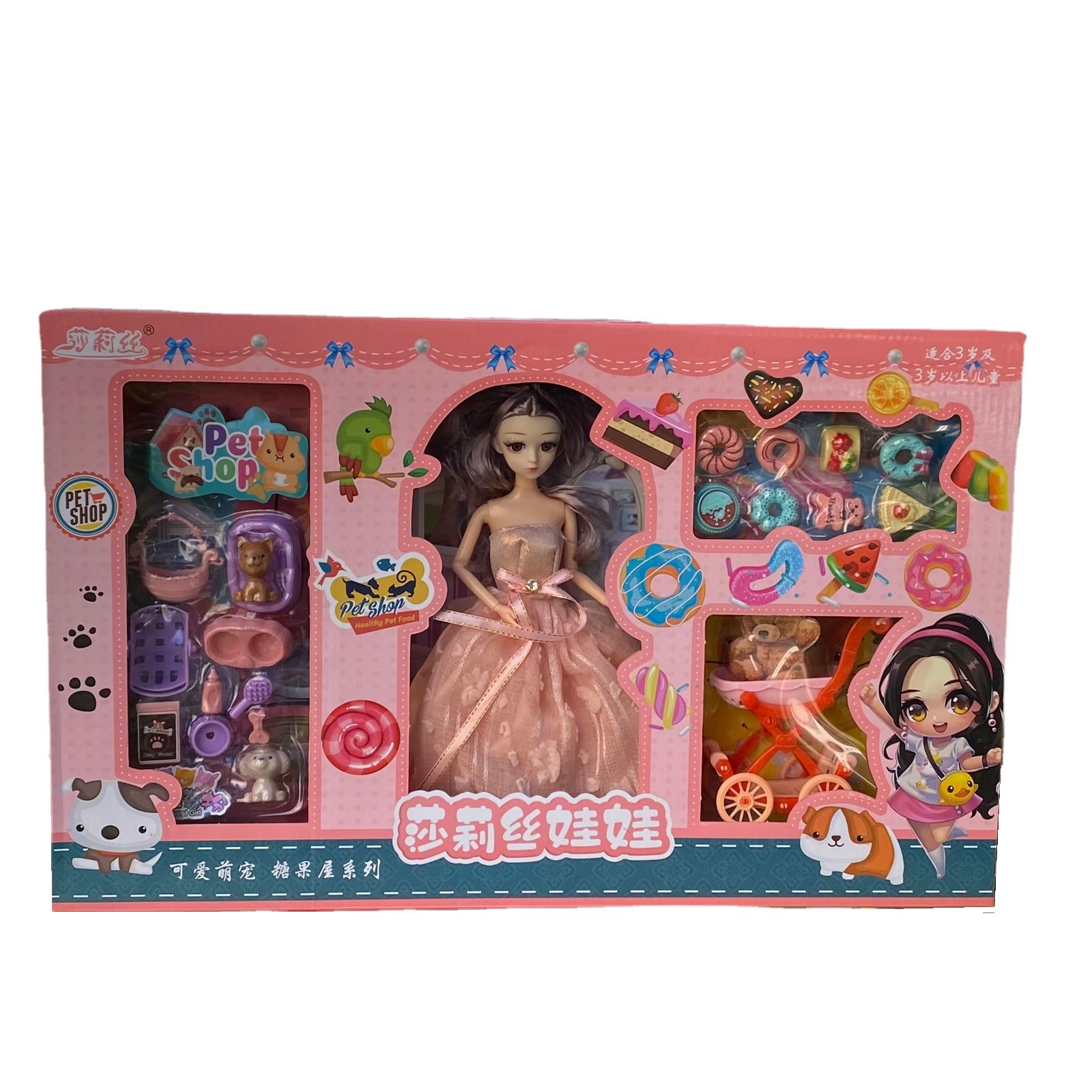 Đồ chơi búp bê thú cưng kèm xe đẩy thú cưng, đồ dùng chăm sóc thú cho bé: