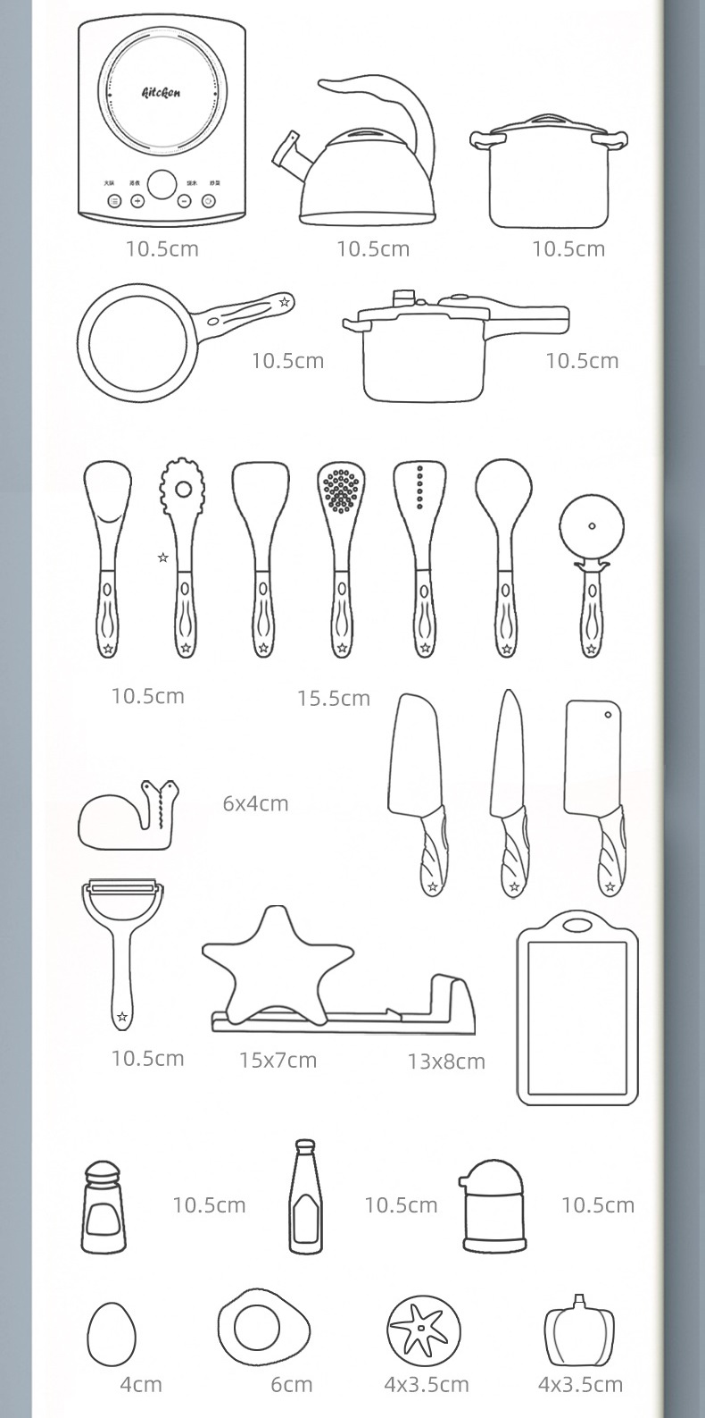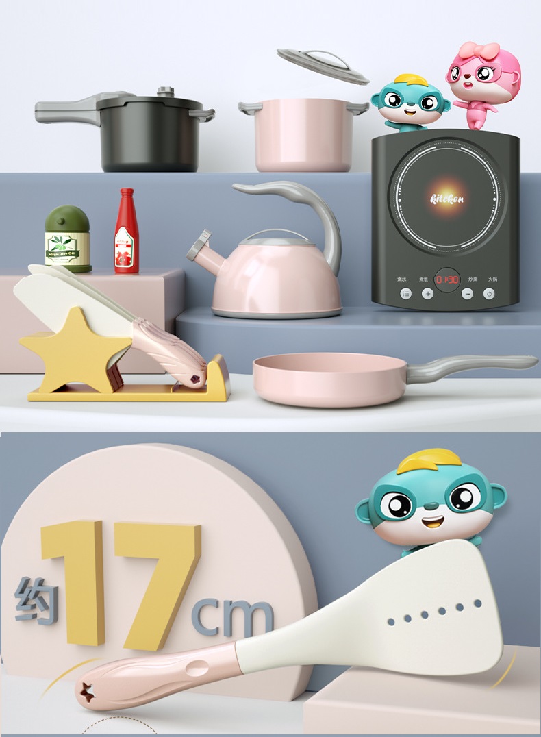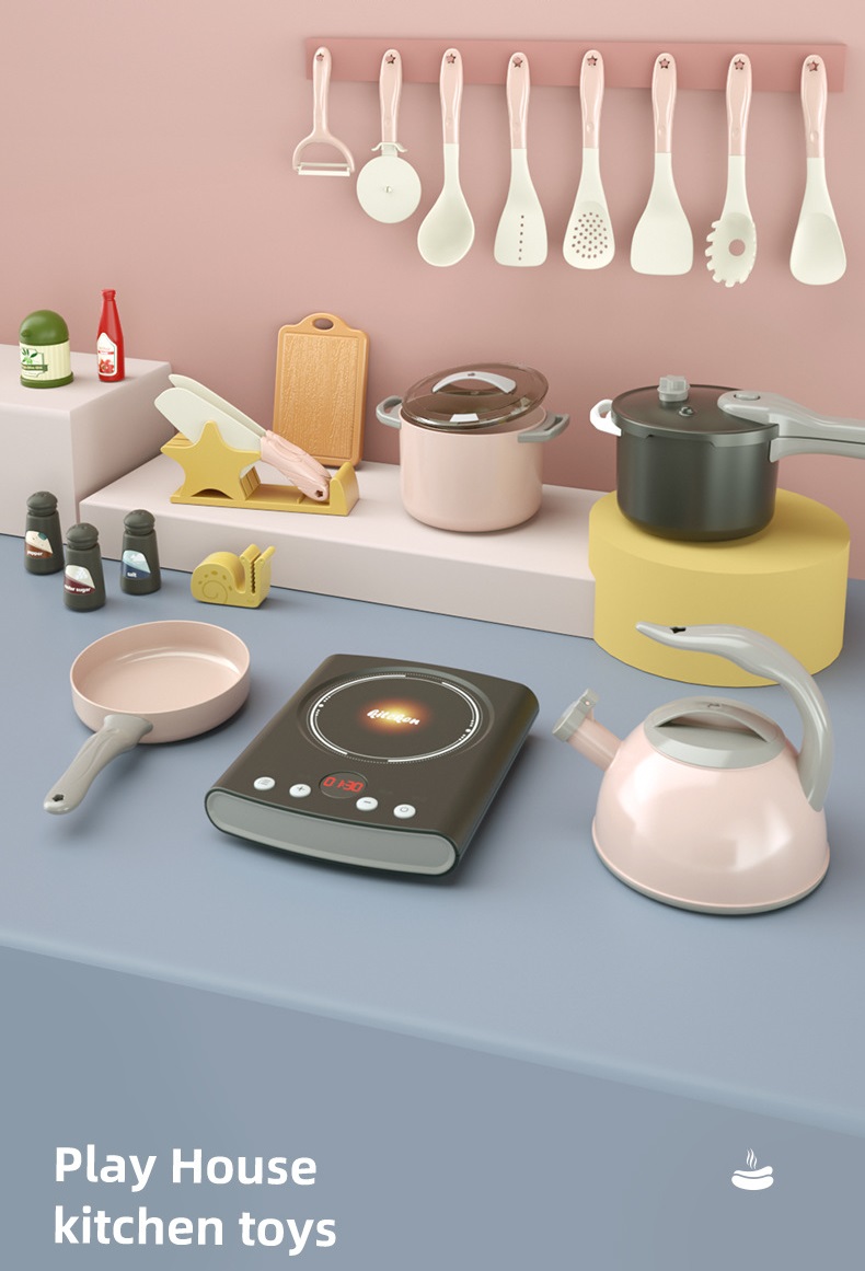 - Các chi tiết mô phỏng hình dáng thực tế của các dụng cụ nấu ăn, gần gũi và thực hành ngay khi bé chơi