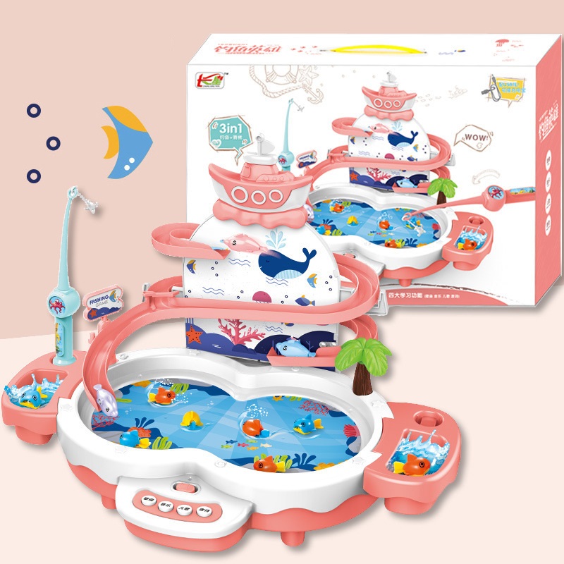 Đồ chơi câu cá có băng chuyền cầu trượt trên cao kèm nhạc cho bé: