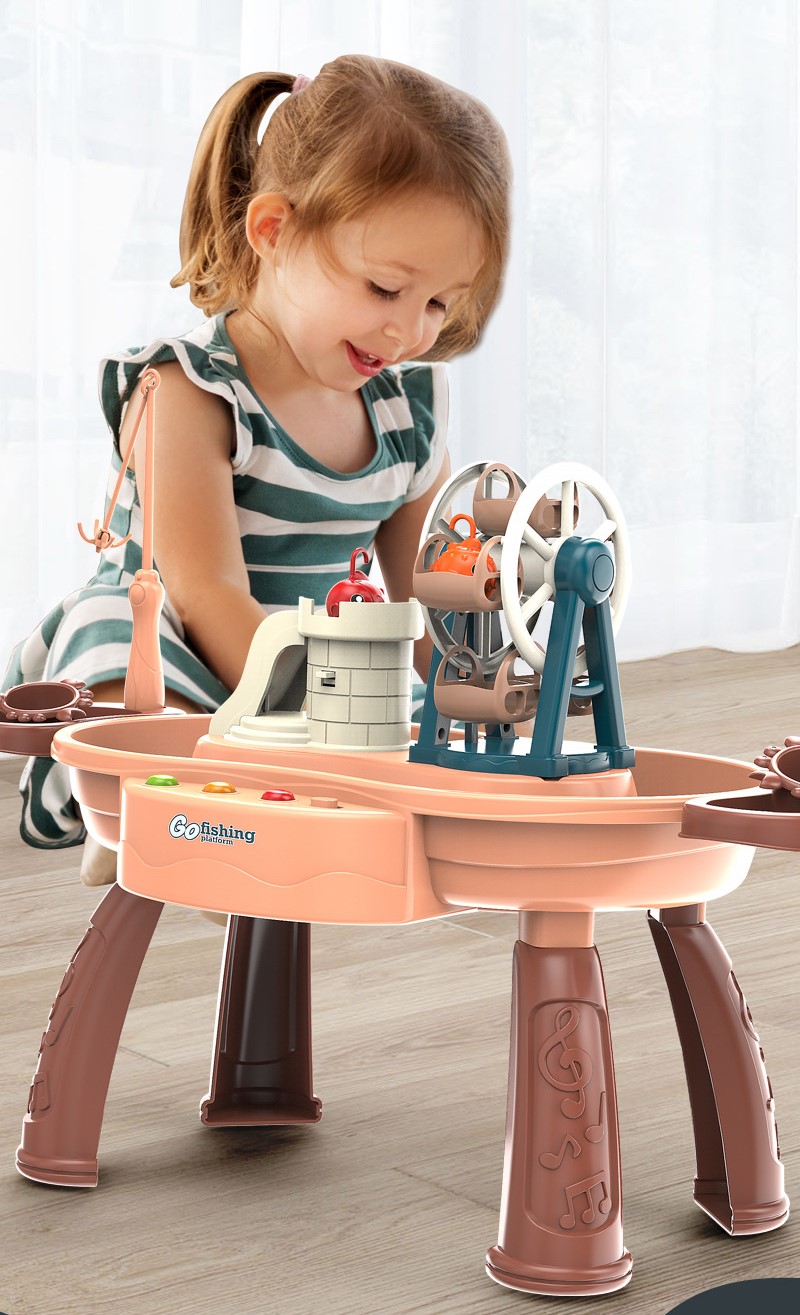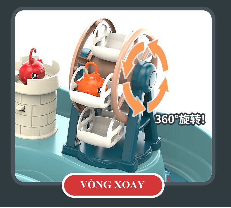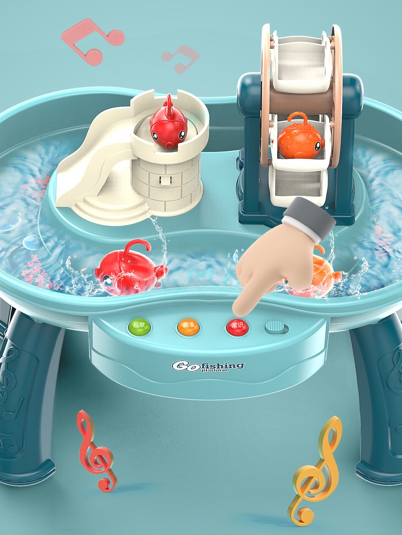 Đồ chơi câu cá dưới nước có cầu quay và tháp cầu trượt, có đèn và nhạc cho bé: