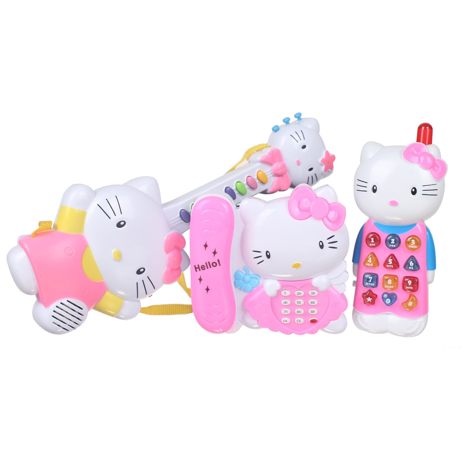 Đồ chơi đàn ghitar, điện thoại, điện thoại bàn nhân vật kitty vui nhộn cho các bé từ 3 tuổi trở lên: