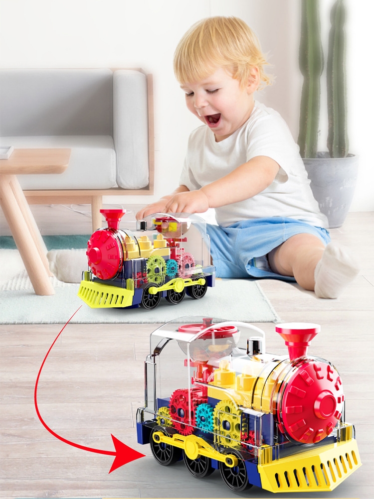 Đồ chơi đầu tàu xe lửa trong suốt chạy bằng pin có đèn cho bé: