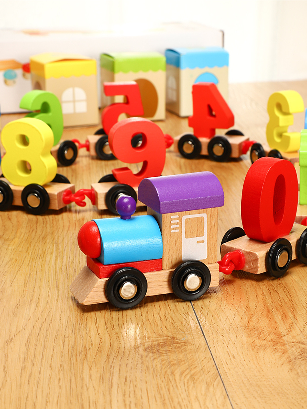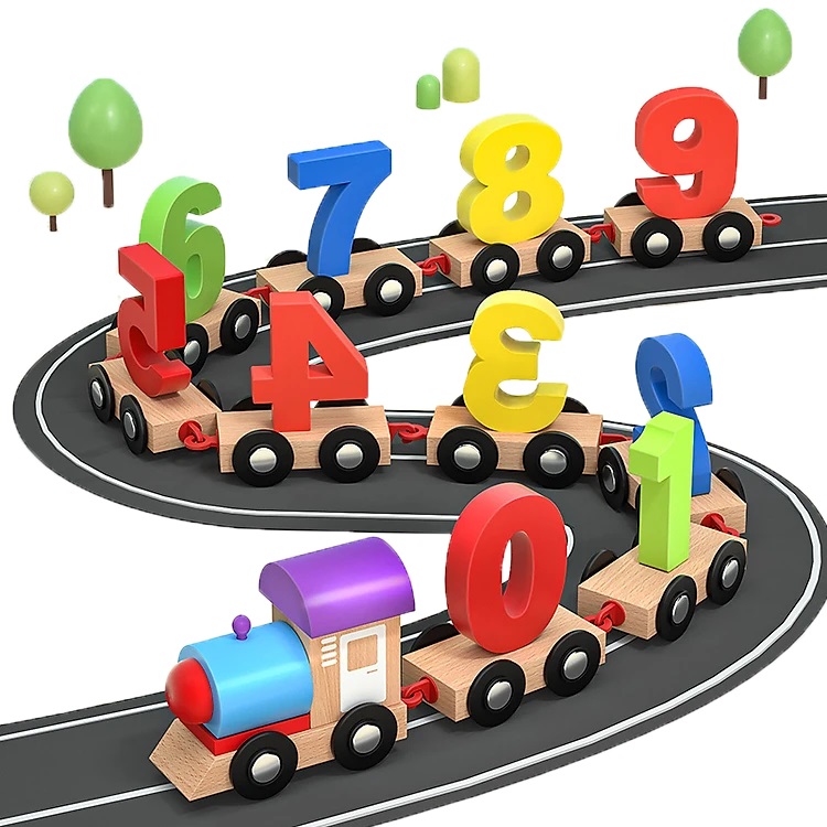 Đồ chơi đoàn tàu số học bằng gỗ cho bé học toán thông minh và khám phá chuyển động của bánh xe: