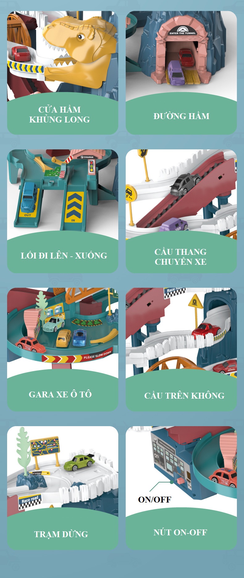 - Đồ chơi đường đua ô tô khủng long cao cấp cho bé