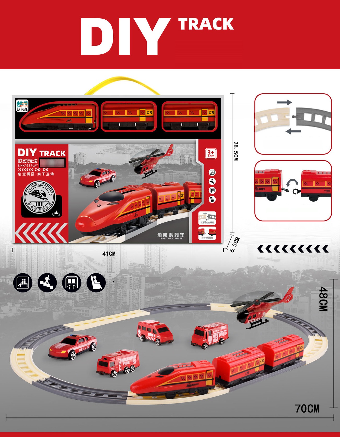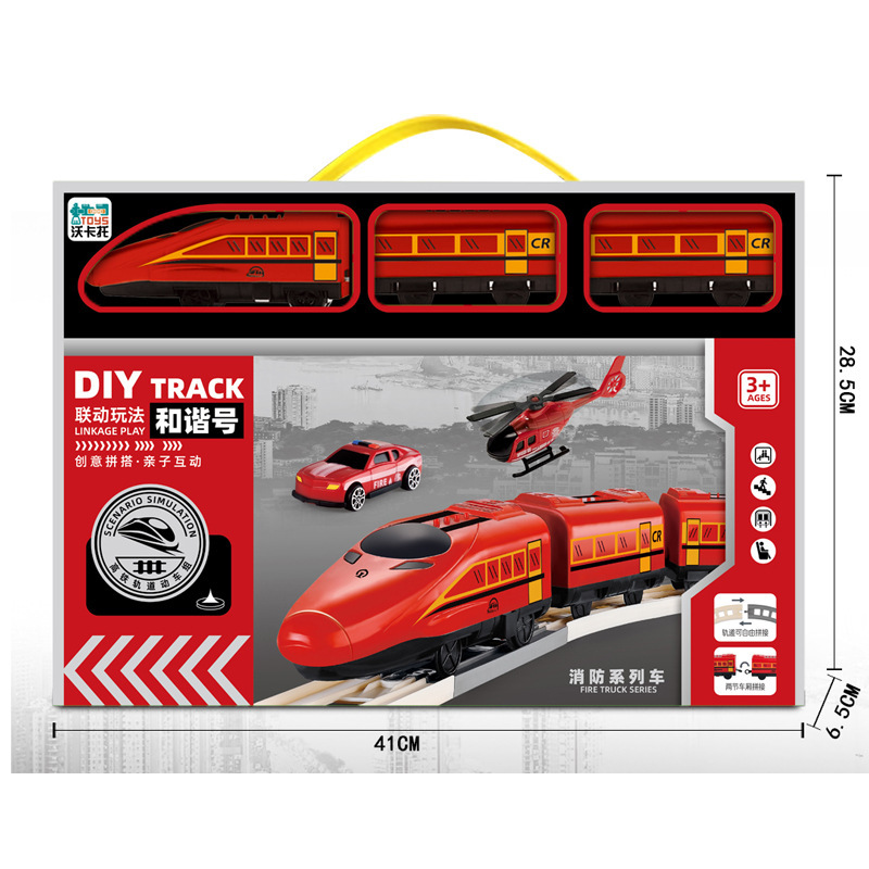 Đồ chơi đường ray xe lửa cứu hỏa màu đỏ với đường ray lắp ráp cho bé: