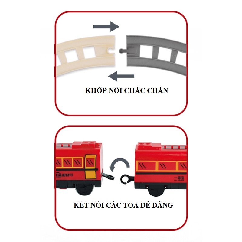 - Đồ chơi tàu lửa siêu tốc với đầu tàu cực nhanh và mạnh, giúp đoàn tàu có thể vượt qua được các cung đường ray khác nhau do bé lắp ráp