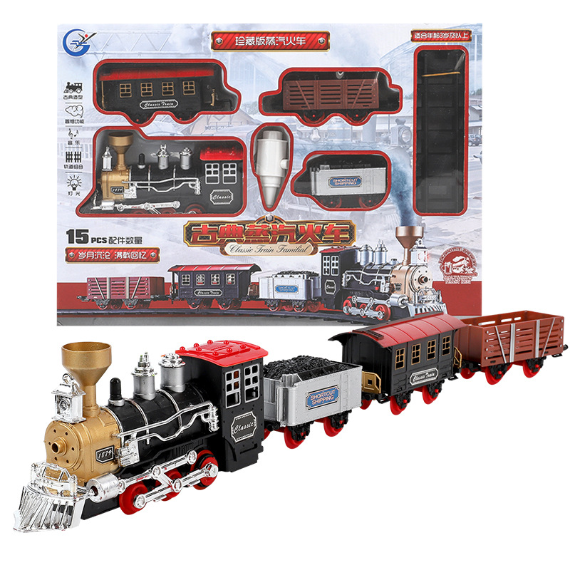 Đồ chơi đường ray xe lửa kèm toa chở hàng với đường ray dài với 15 mảnh ghép chi tiết cho bé: