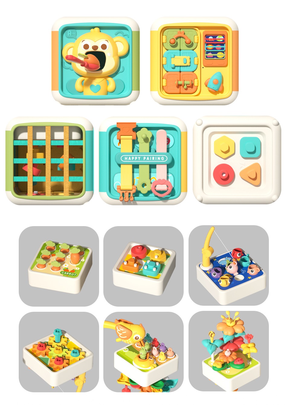 Đồ chơi hộp khỉ bận rộn đa chức năng: câu cá, xếp hình khối, bánh răng... sáng tạo và tư duy dành cho các bé từ 3 tuổi trở lên: