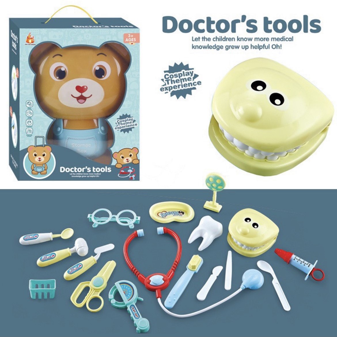 Đồ chơi hộp nha sỹ gấu kèm các dụng cụ khám bệnh cho bé: