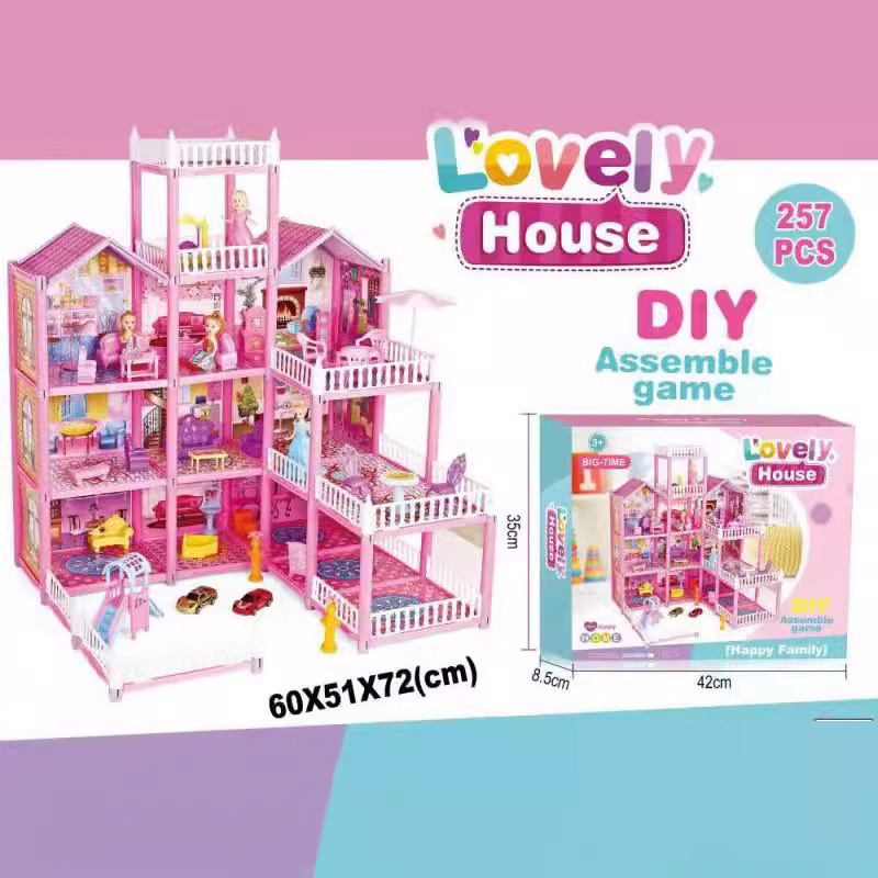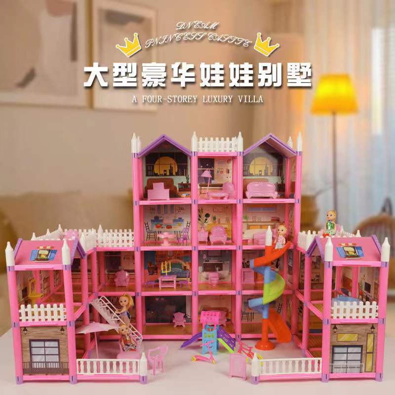 Đồ chơi lắp ghép ngôi nhà villa búp bê hai tầng với đầy đủ vật dụng, đồ dùng cho bé: