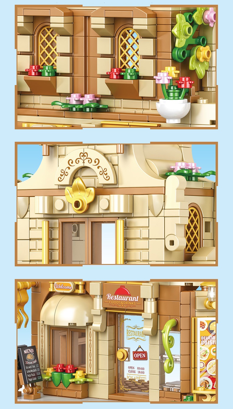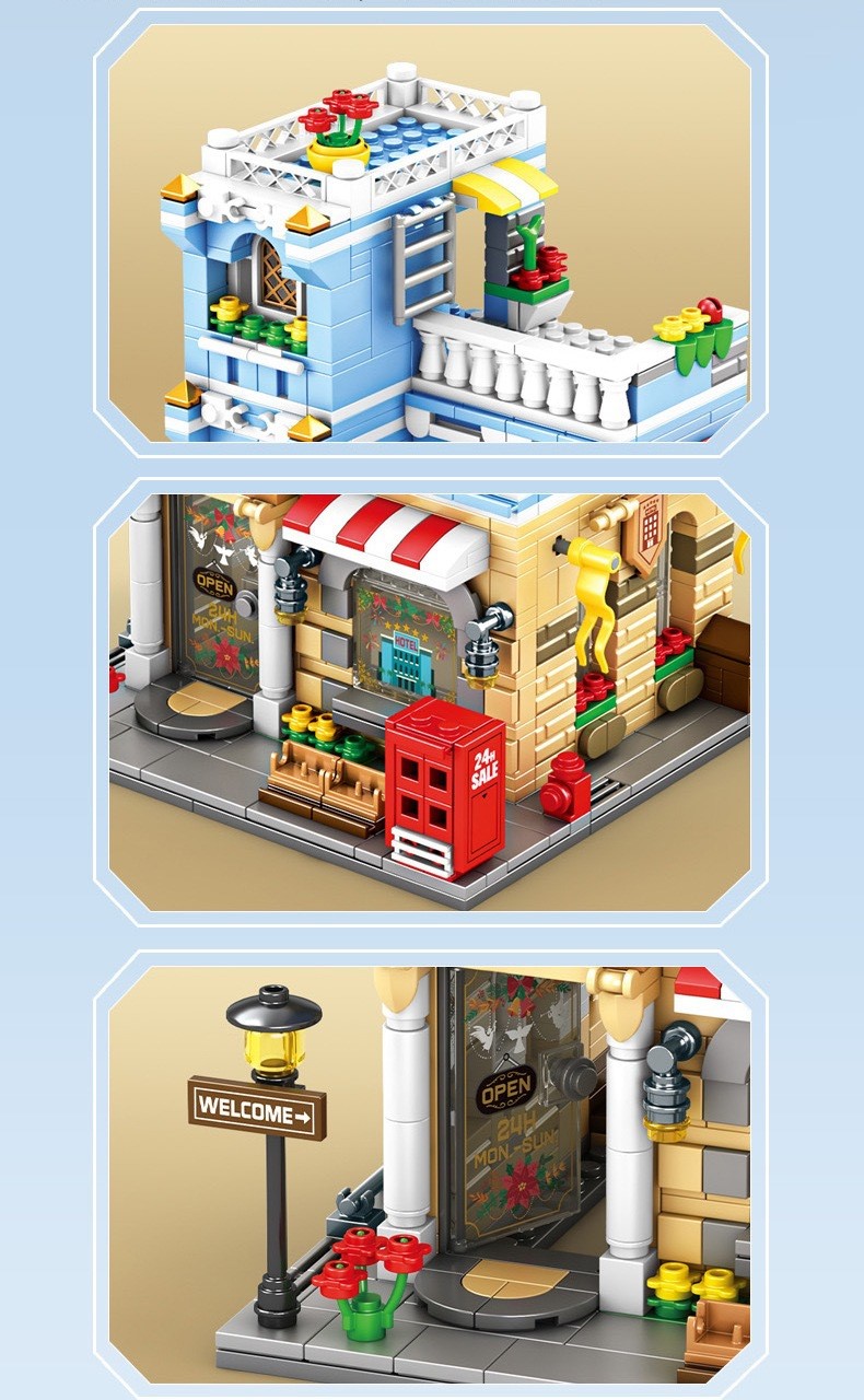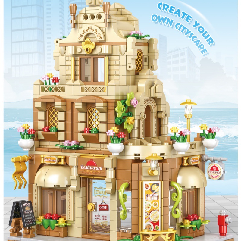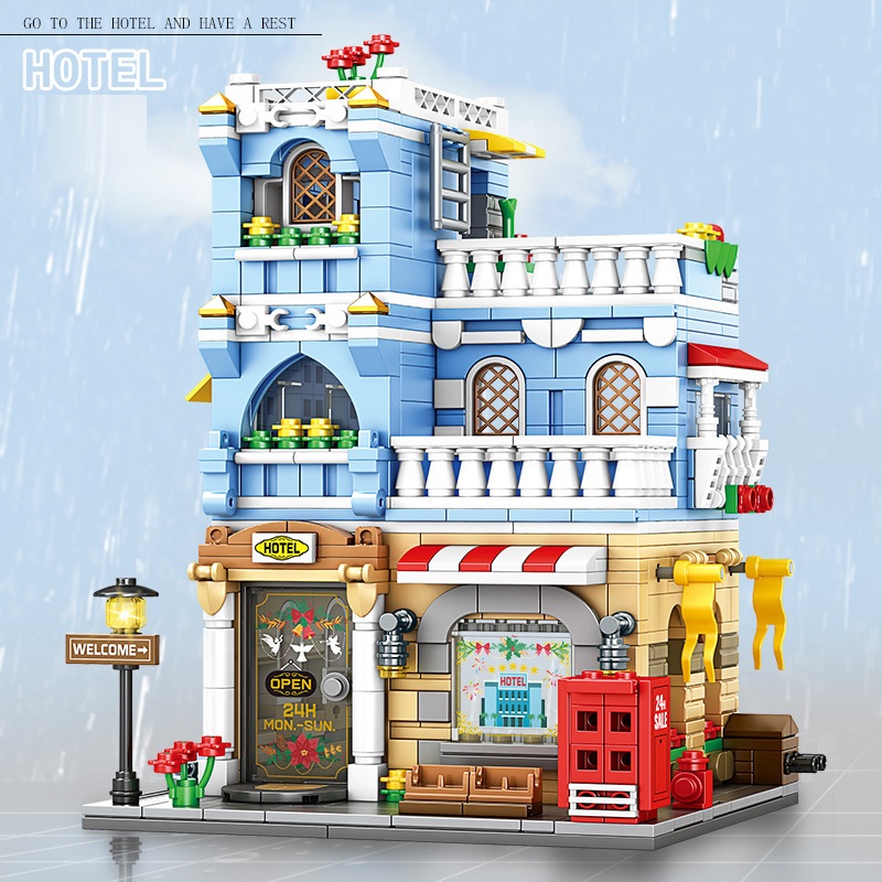 Đồ chơi lắp ghép xếp hình city nhà phố: quán cà phê, khách sạn, nhà hàng ... với 713, 760, 828 chi tiết:
