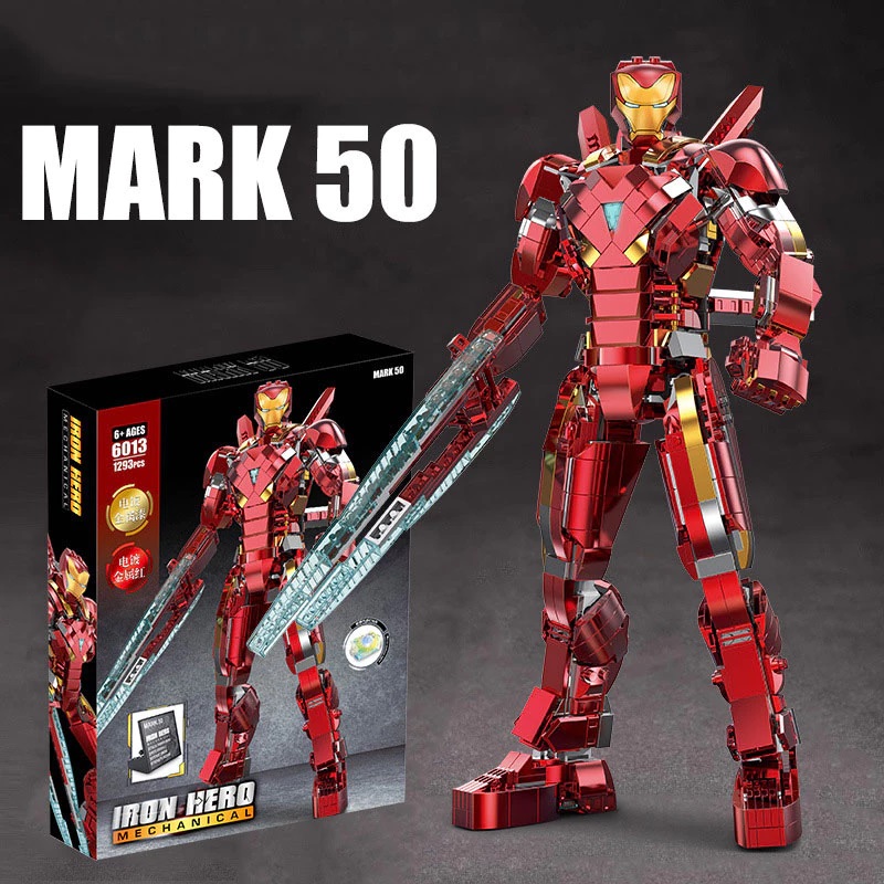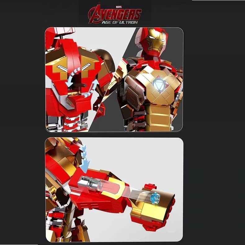 Đồ chơi lắp ghép xếp hình Iron Man giáp nano MARK 50 trong Age of Ultrol cỡ lớn kèm nhiều chi tiết chuyển động với 1293 mảnh ghép cho bé: