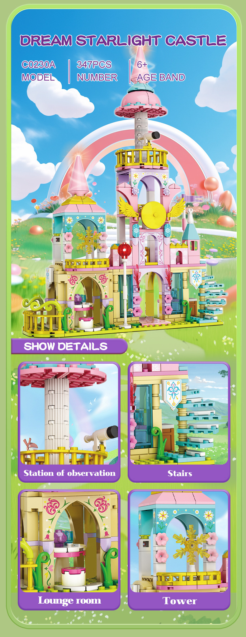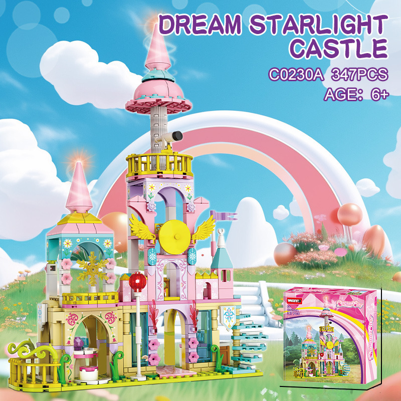 Đồ chơi lắp ghép xếp hình lâu đài ánh sao màu hồng công chúa với 347 chi tiết: