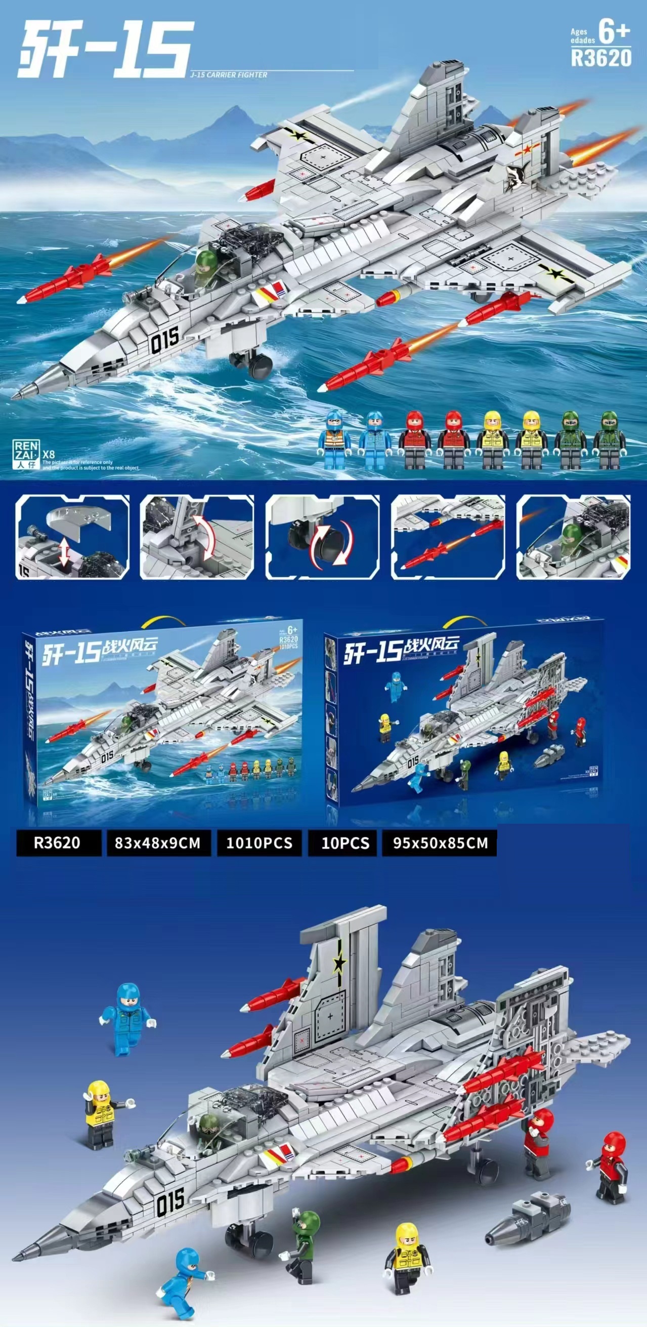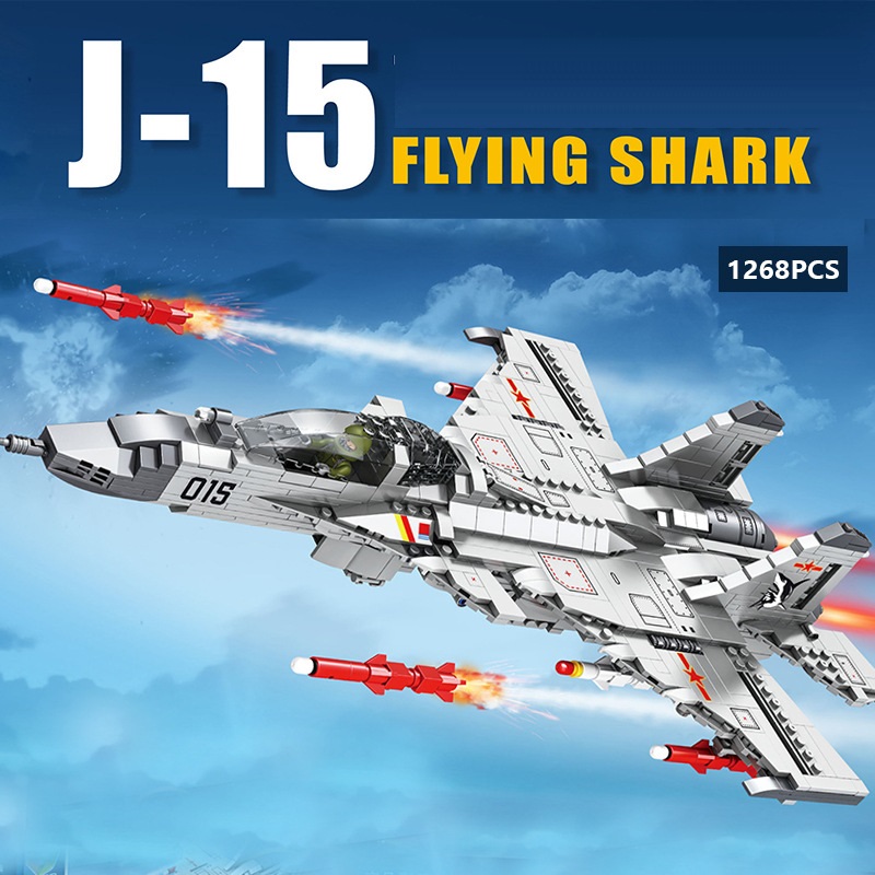 Đồ chơi lắp ghép xếp hình máy bay tiêm kích phản lực J-15 Flying Shark mẫu lớn cao cấp với 1010 mảnh ghép: