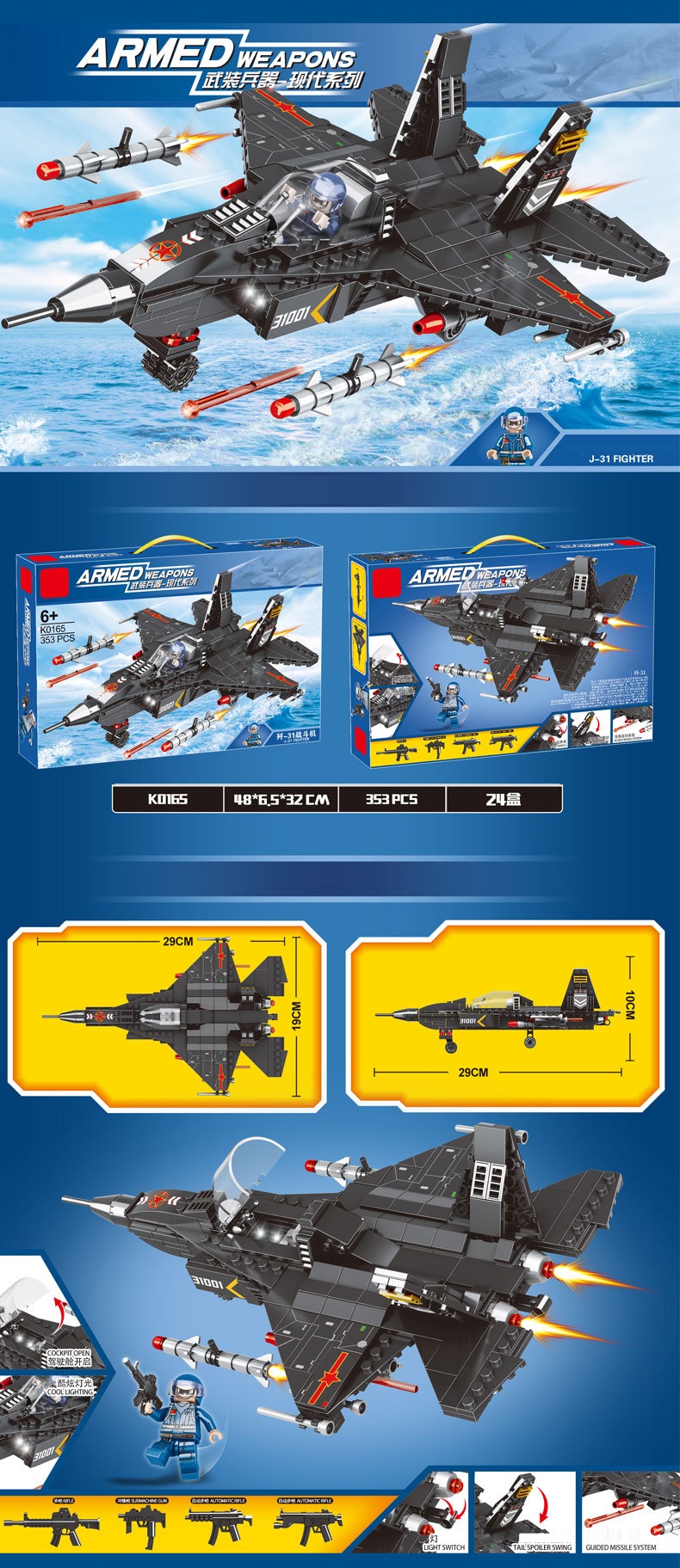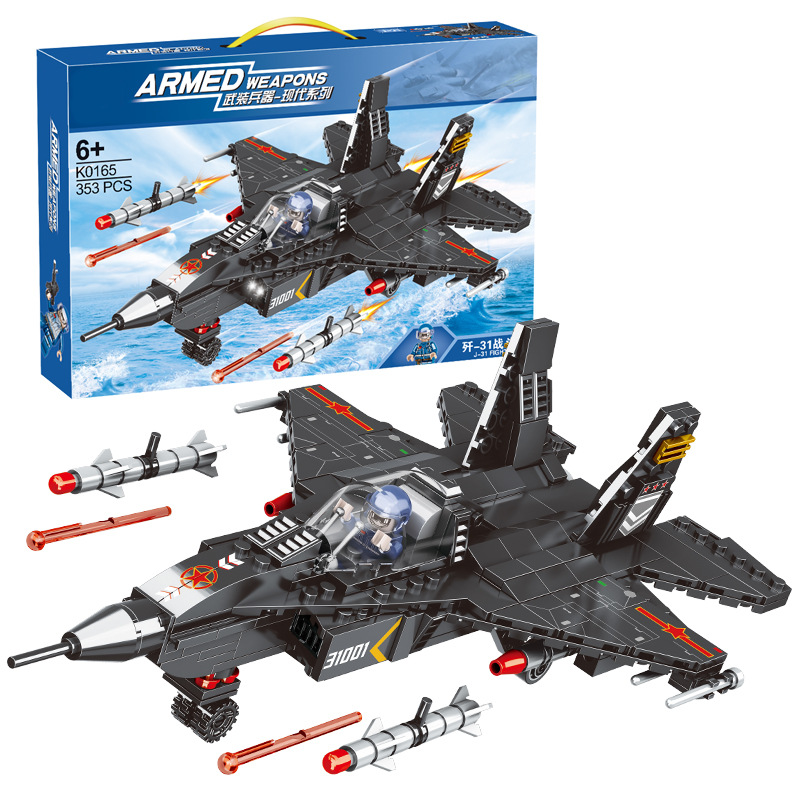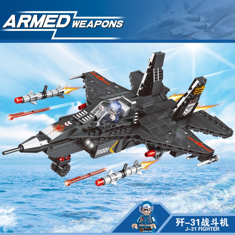 Đồ chơi lắp ghép xếp hình máy bay tiêm kích phản lực màu đen cao cấp với 353 mảnh ghép: