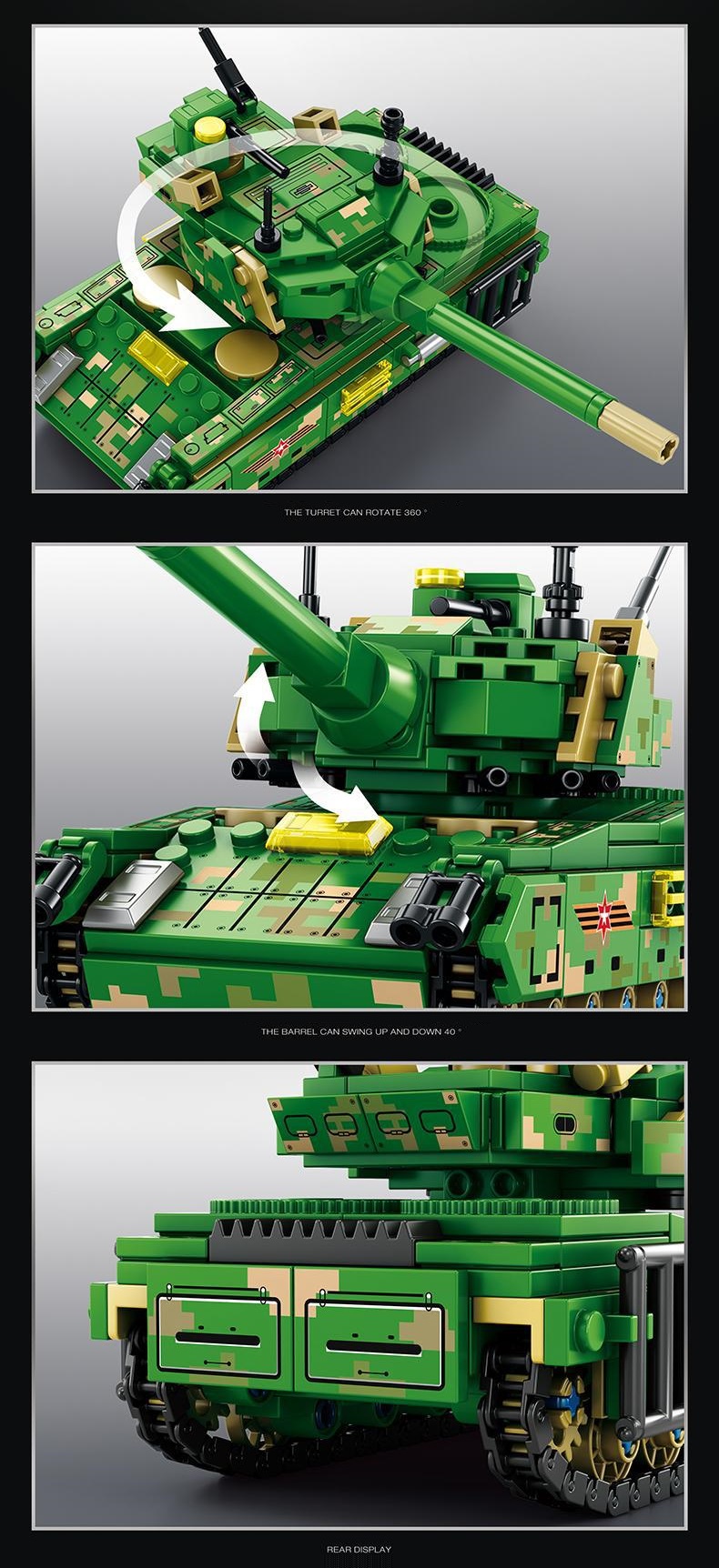 - Các chi tiết như thân tàu, tháp pháo, nắp đậy có thể đóng mở