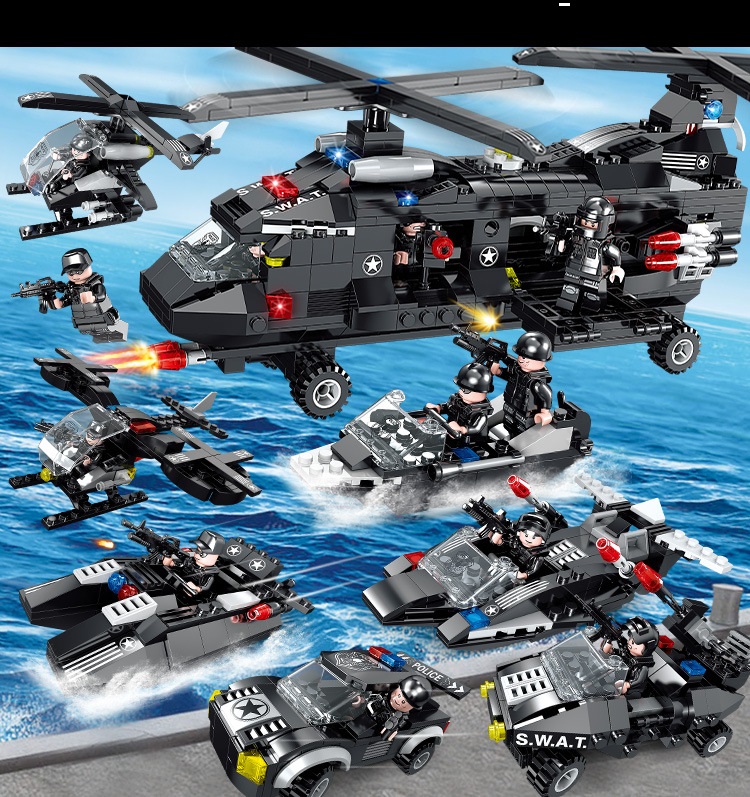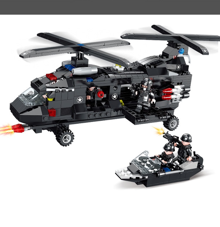 Đồ chơi lắp ghép xếp hình máy bay trực thăng vận tải thân dài 6 trong 1 với 766 mảnh ghép: