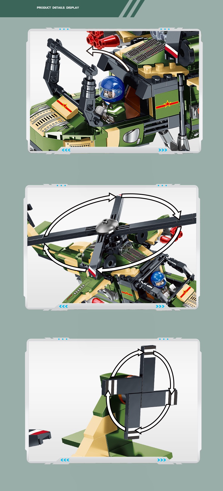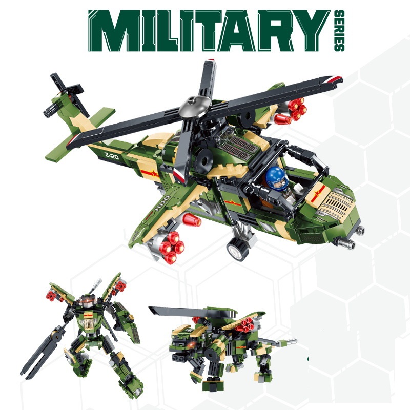 Đồ chơi lắp ghép xếp hình máy bay trực thăng vũ trang 3 trong 1 với 489 mảnh ghép: