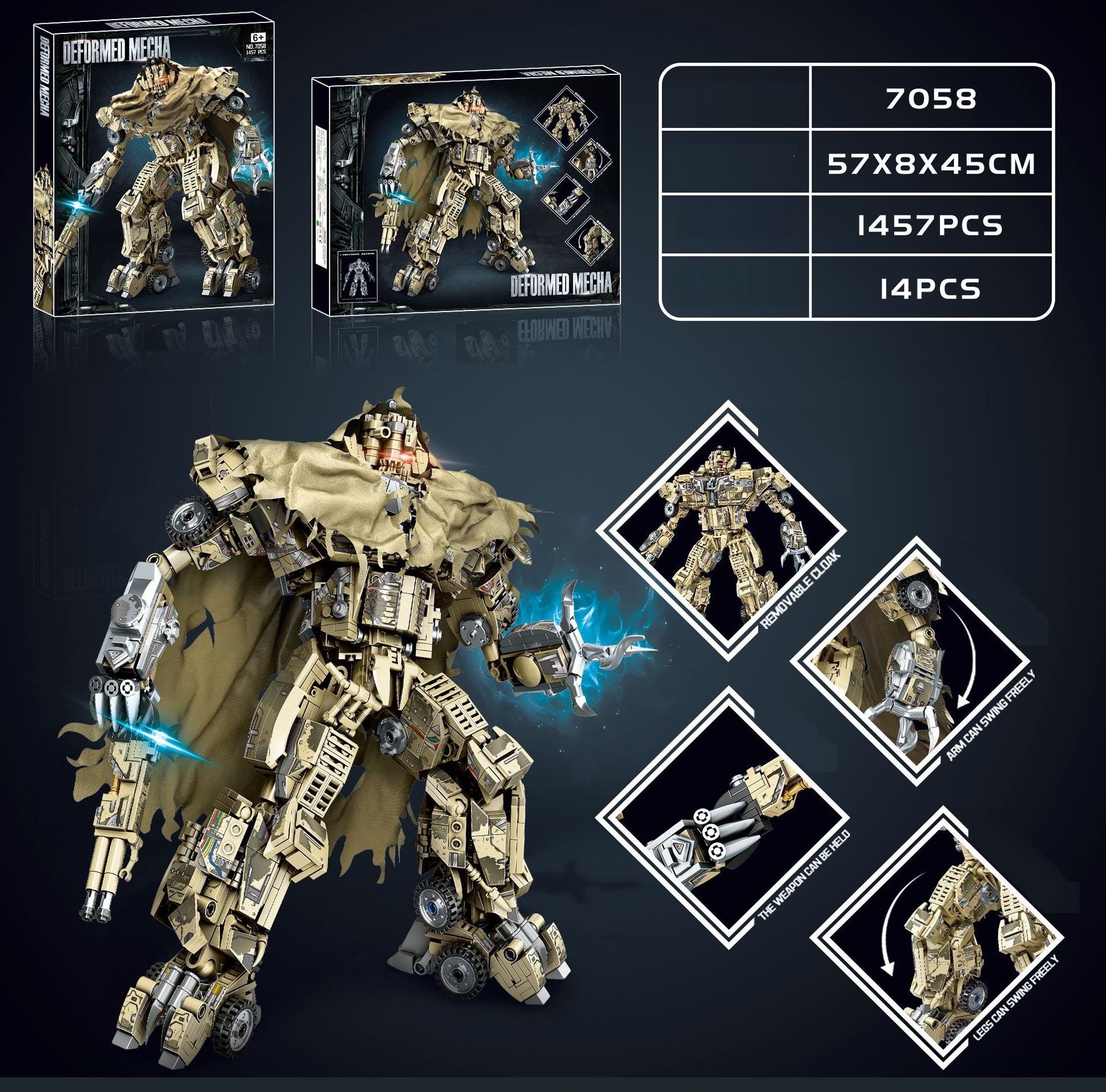 - Các chi tiết được mô phỏng giống đến như thật trong bộ phim Tranformer, các chi tiết như khớp tay, chân, đầu có thể chuyển động linh hoạt.