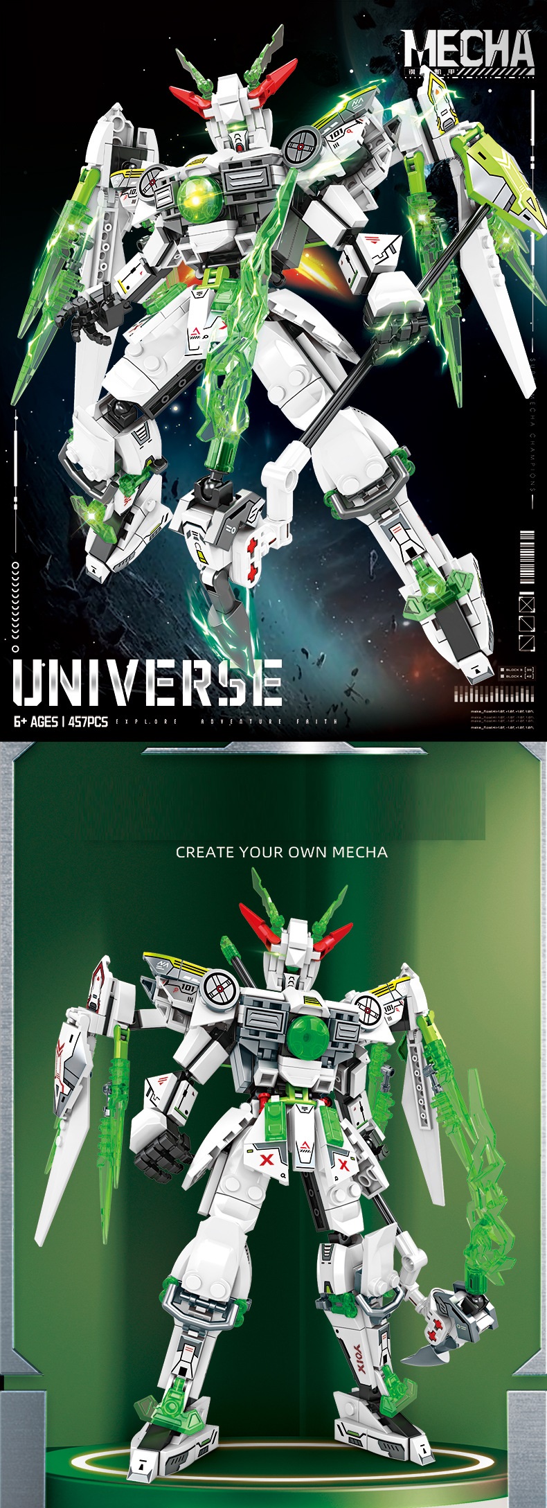 Đồ chơi lắp ghép xếp hình robot Mecha Warior - Universe mẫu mới với kiếm laser 454-457 chi tiết cho bé: