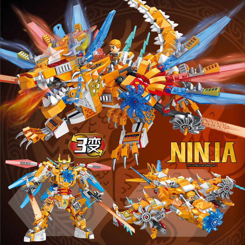 Đồ chơi lắp ghép xếp hình rồng vàng ninja 3 trong 1 với 650 chi tiết: