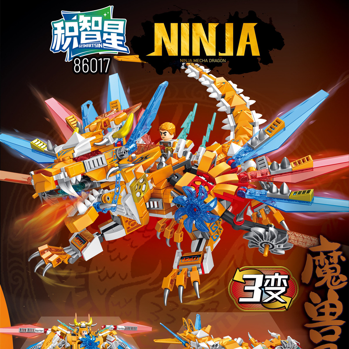 - Mô hình rồng vàng cùng chiến binh ninja cưỡi trên lưng cực ngầu