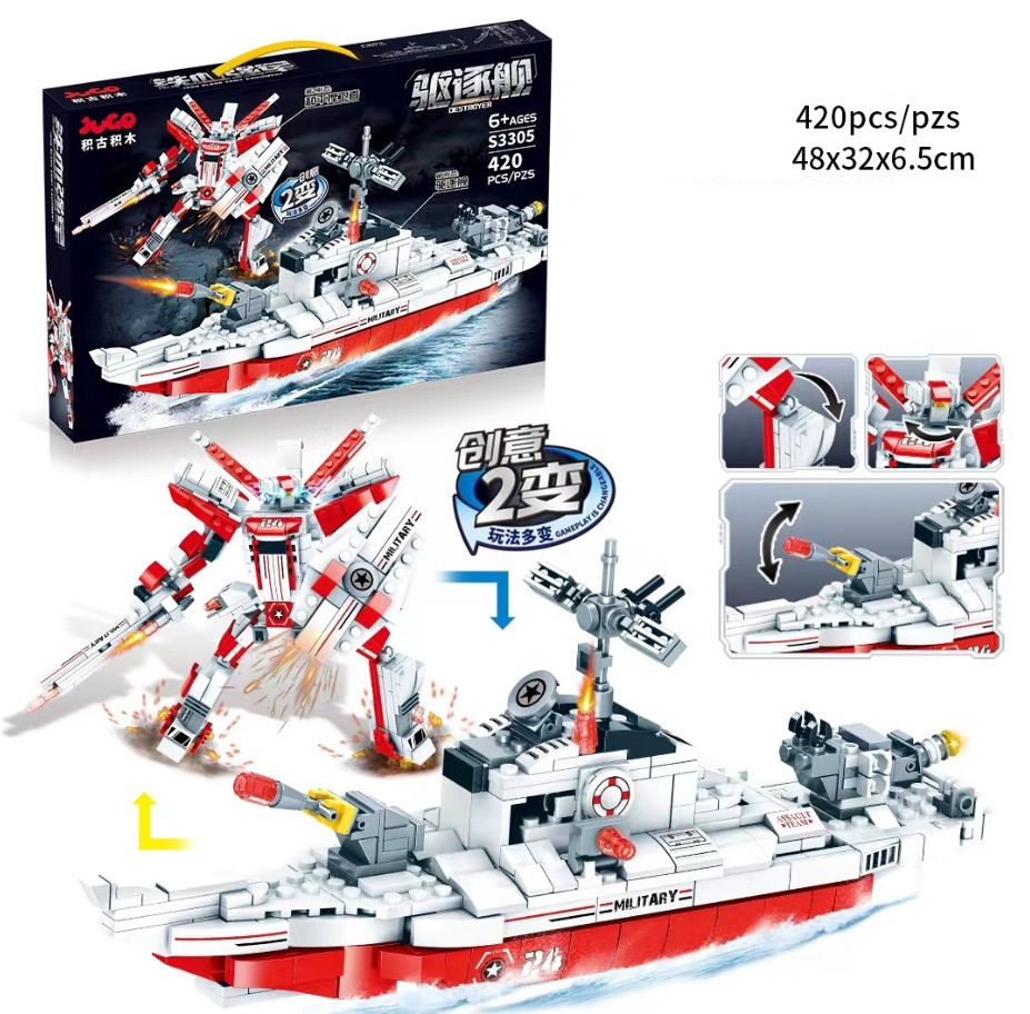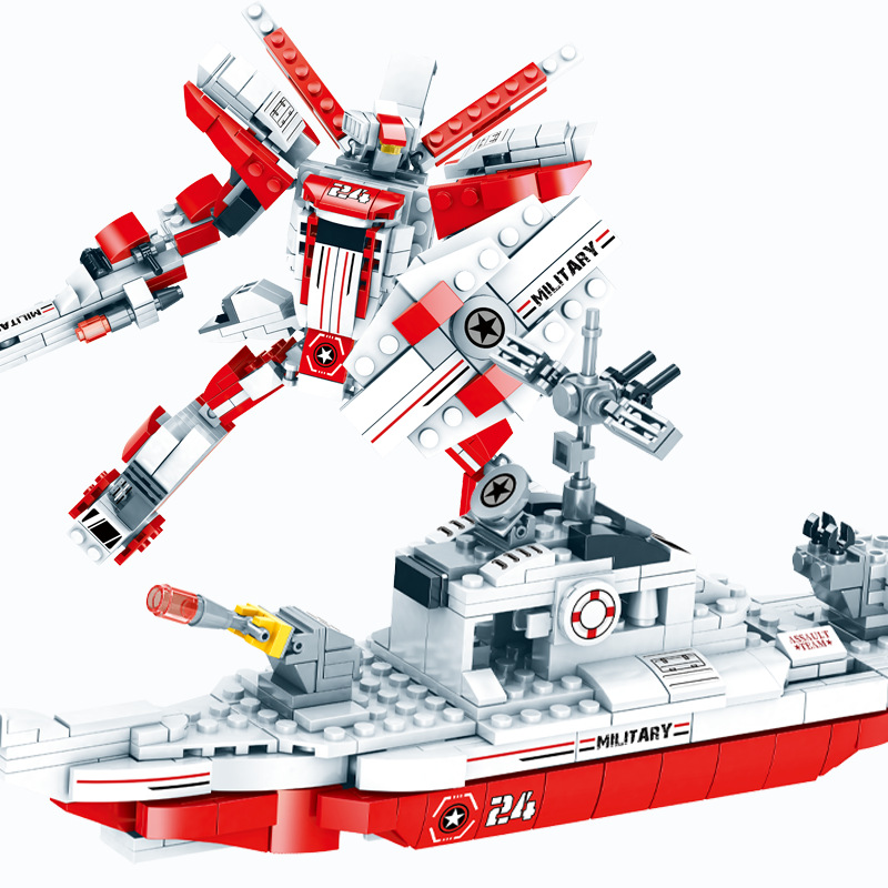 Đồ chơi lắp ghép xếp hình siêu nhân biến hình tàu chiến 2 trong 1 với 420 chi tiết: