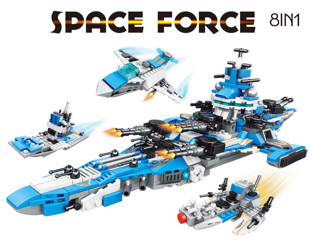 Đồ chơi lắp ghép xếp hình tàu cảnh sát biển 8 trong 1 với 954 mảnh ghép cho bé: