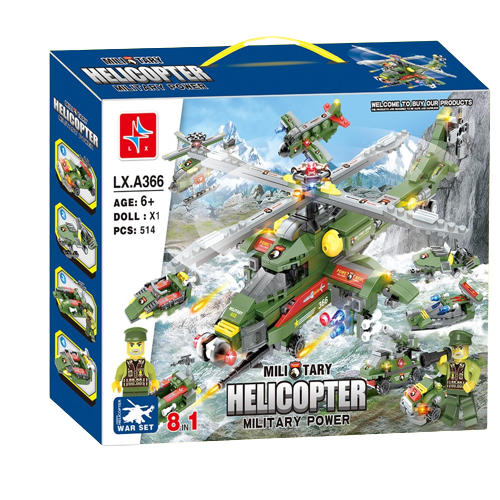 Đồ chơi lắp ghép xếp hình trực thăng chiến đấu 8 trong 1 với 514 chi tiết cho bé: