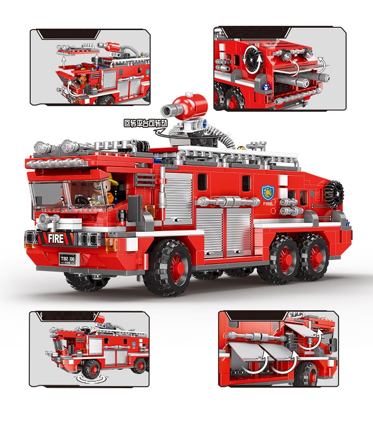 Đồ chơi lắp ghép xếp hình xe cứu hỏa cỡ lớn với 720 mảnh ghép: