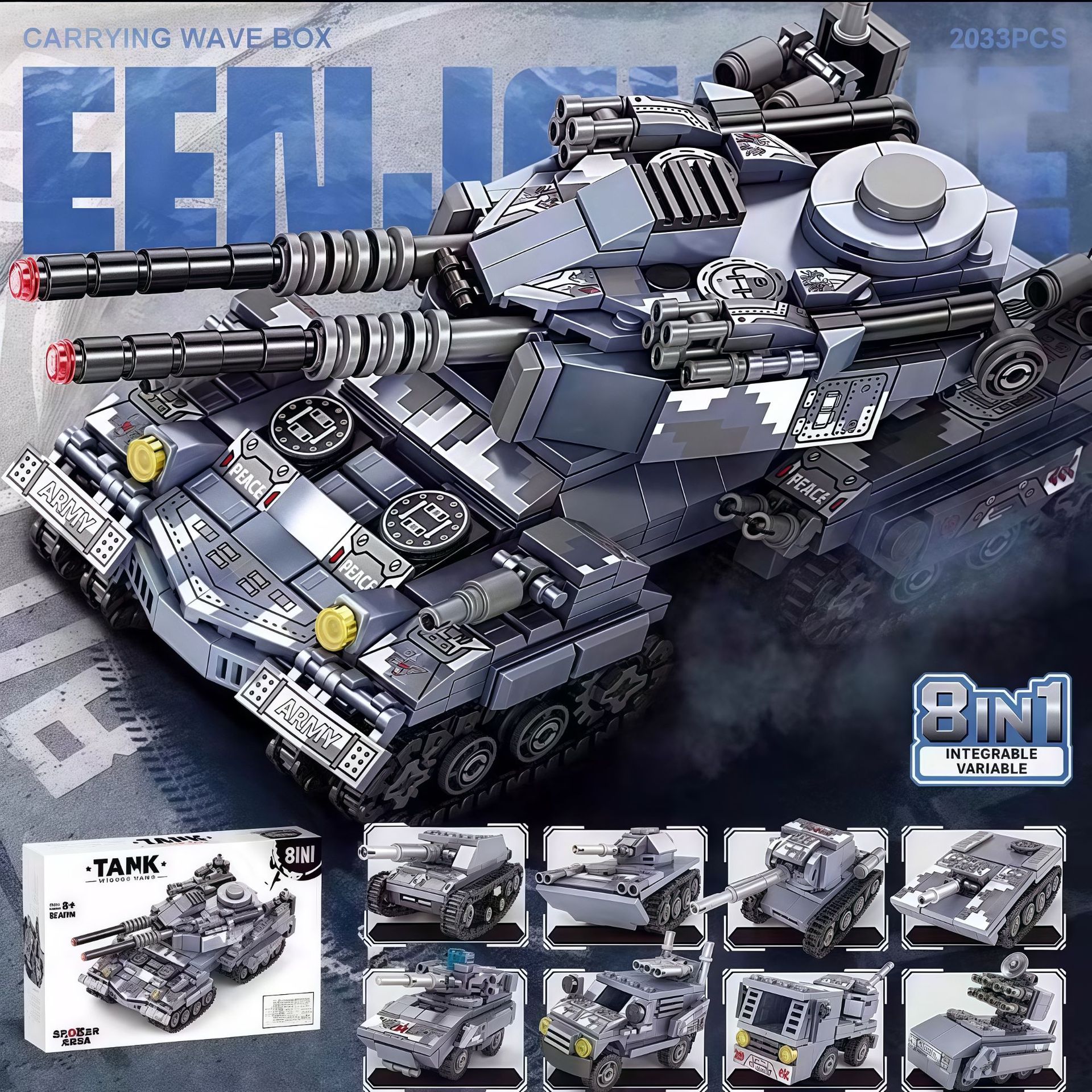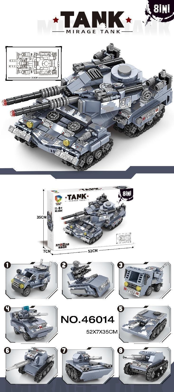 Đồ chơi lắp ghép xếp hình xe tăng hai nòng 8 trong 1 với nhiều mẫu xe nhỏ 796 chi tiết: