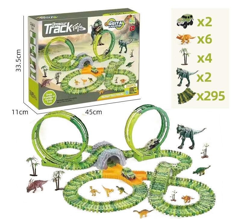Đồ chơi lắp ráp đường đua ô tô chạy pin mô hình khủng long với hơn 260 chi tiết: