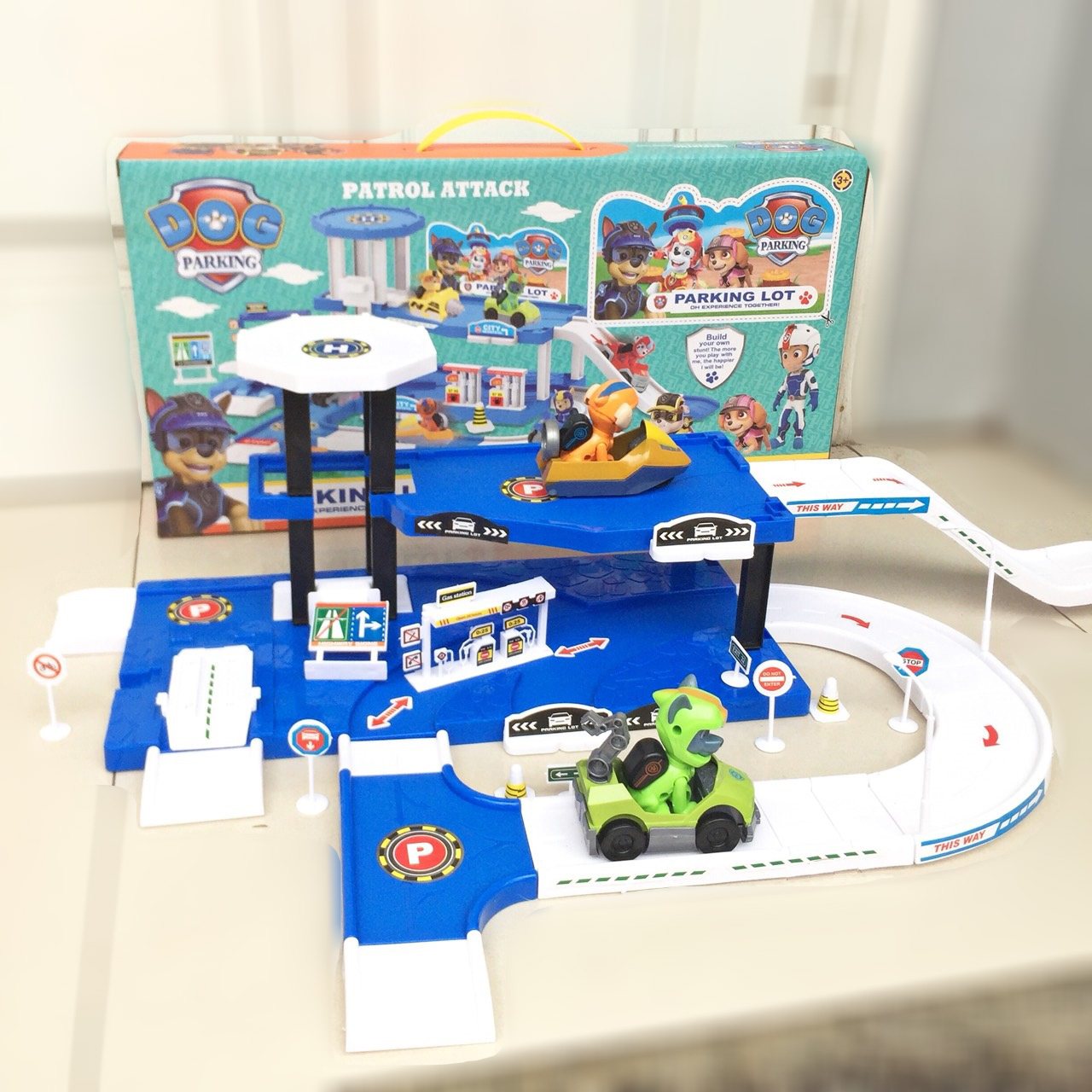 Đồ chơi lắp ráp mô hình bãi đỗ xe của những chú chó cứu hộ và Poli Car Parking Lot cho bé.