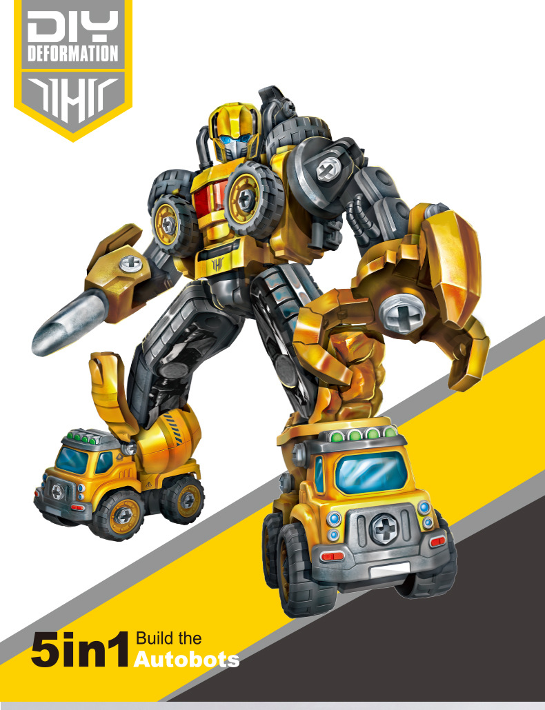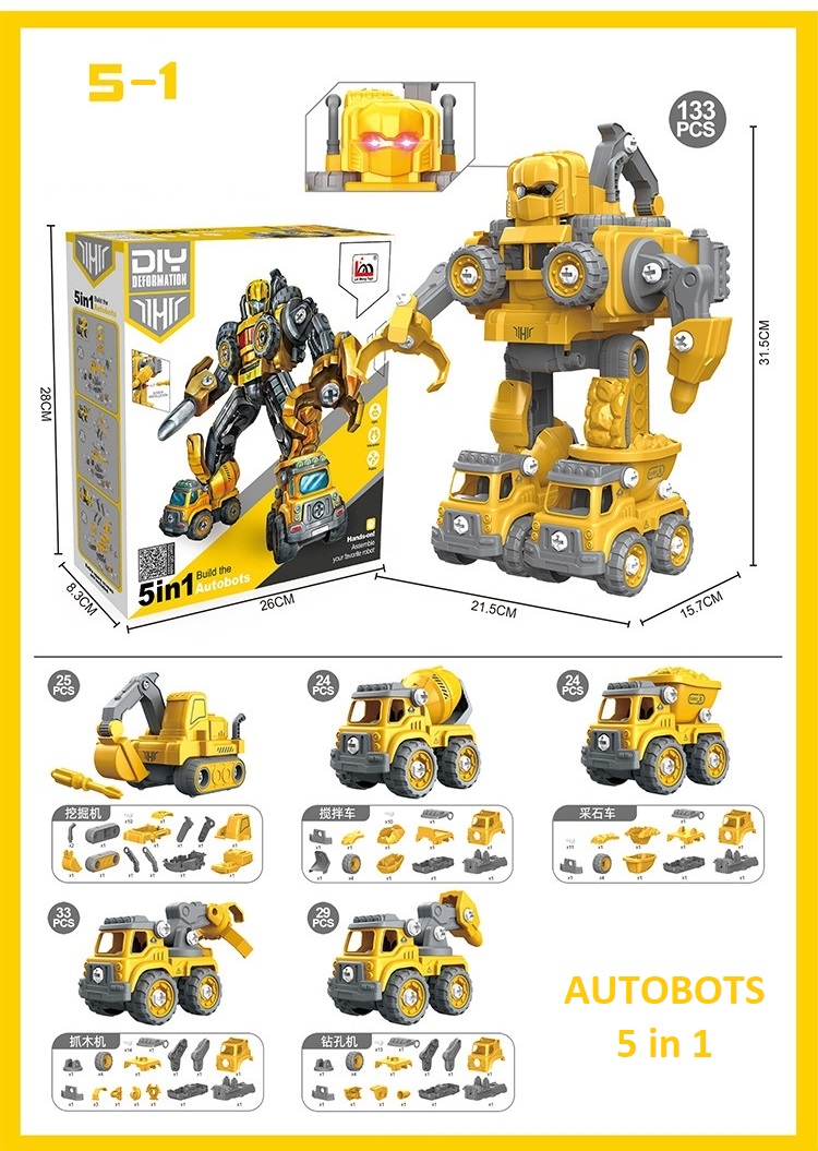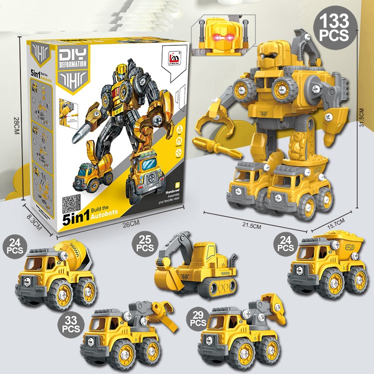 Đồ chơi lắp ráp ô tô công trường biến hình thành robot 5 trong 1 với hơn 133 chi tiết bằng vít: