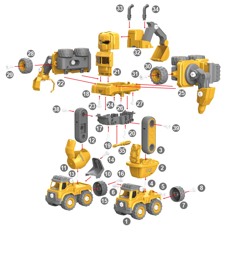 - Được lắp ghép từ 05 mẫu xe công trường láp ráp bằng vít