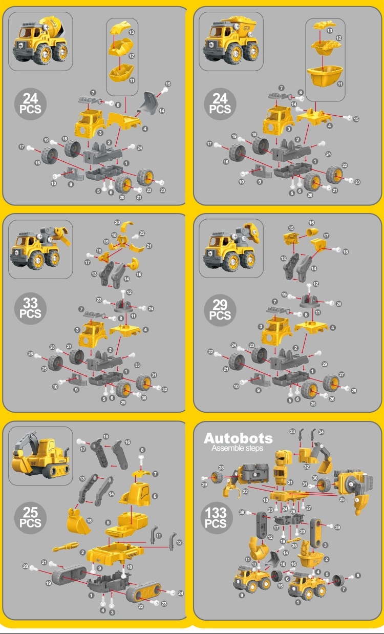 - Các mẫu xe gồm từ 24, 25, 29, 33 chi tiết lắp ráp