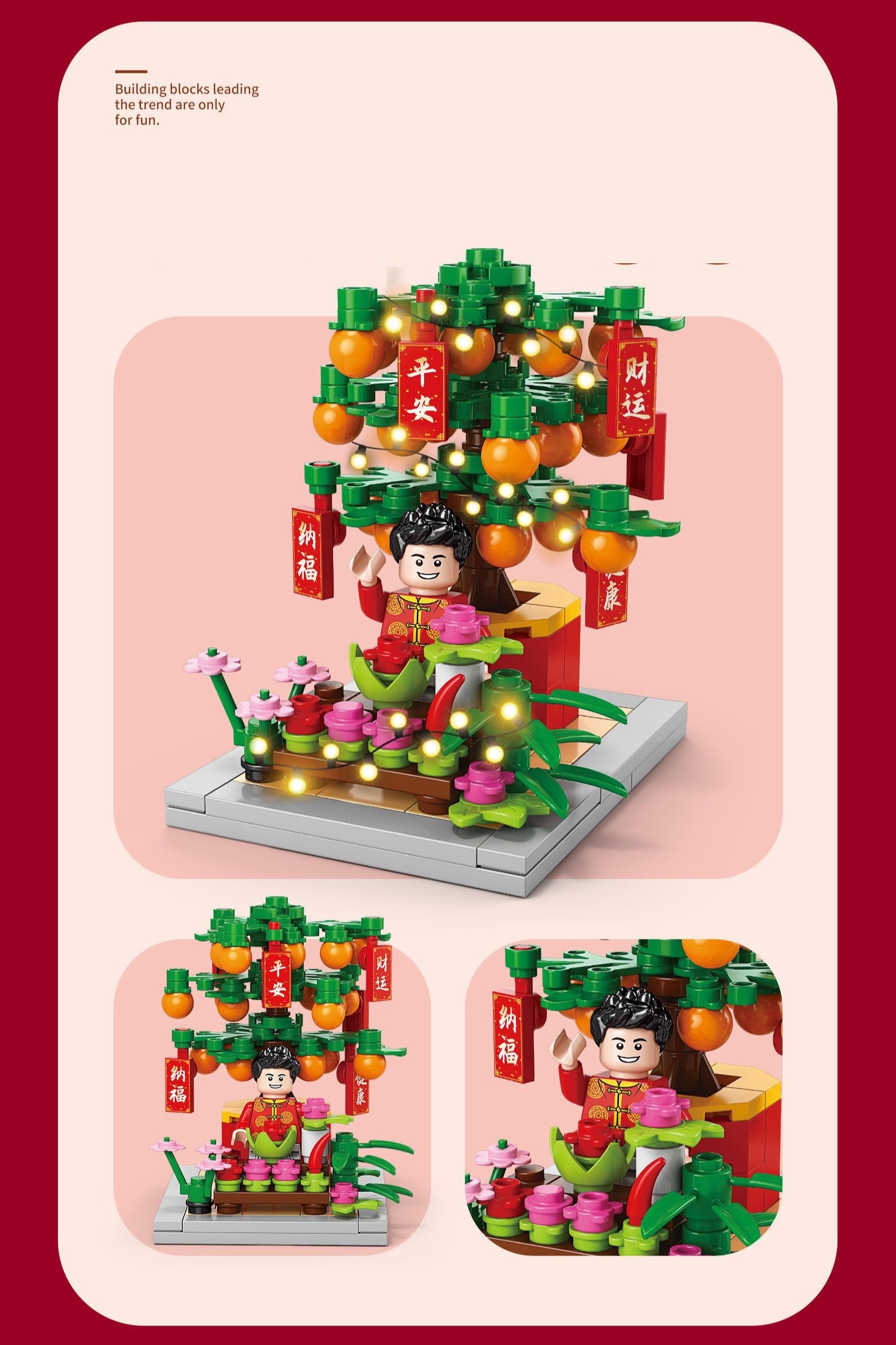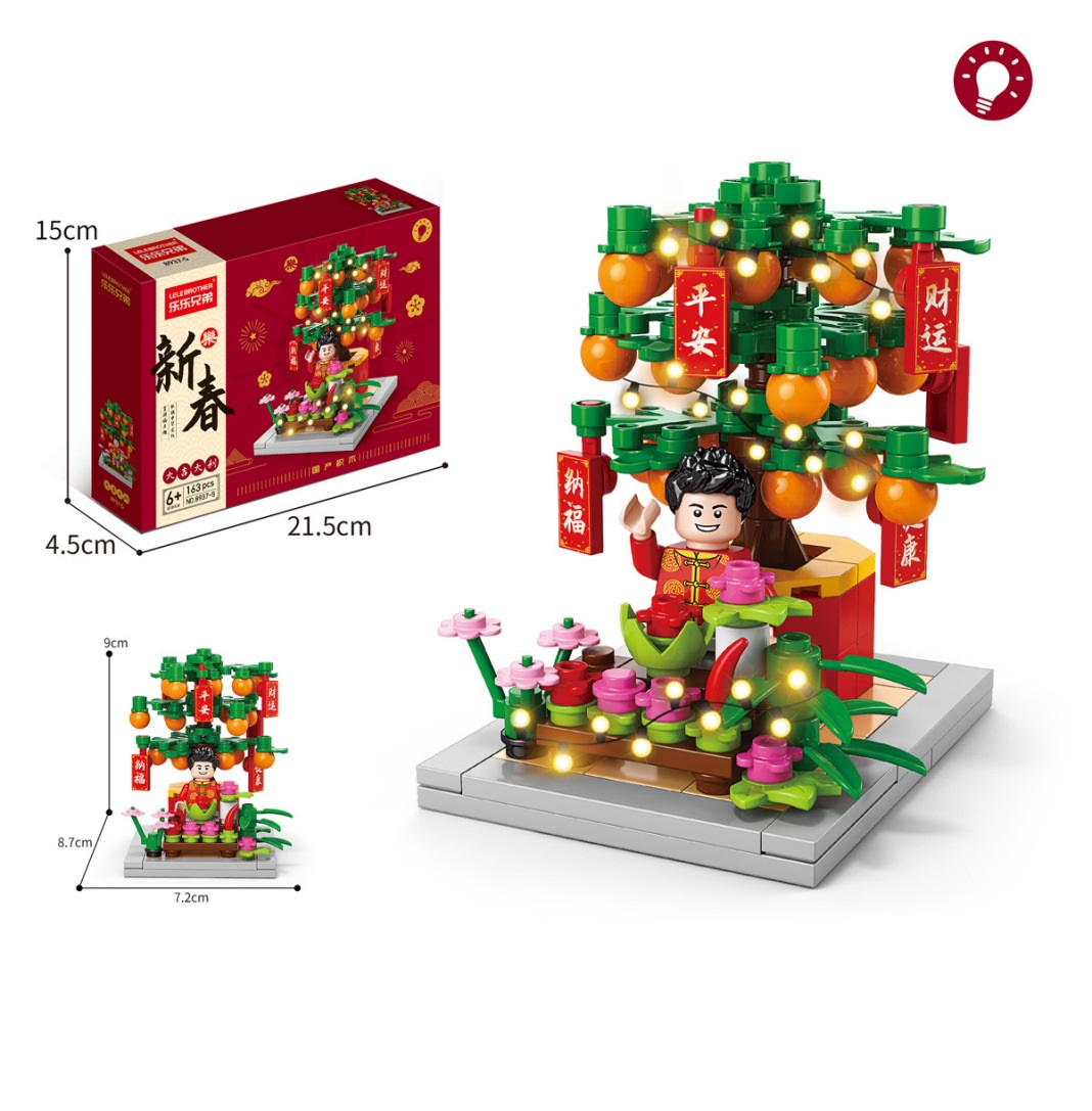 Đồ chơi lắp ghép xếp hình cây đào quất ngày tết với 163 chi tiết cho bé: