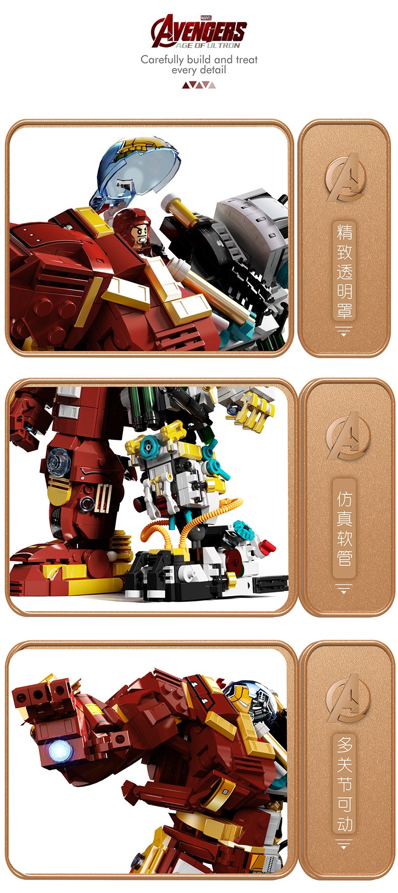 - Bộ giáp được kết hợp giữa bộ giáp đầu đời của Tony Start Mark1 với bộ giá Anti Hulk cực lớn